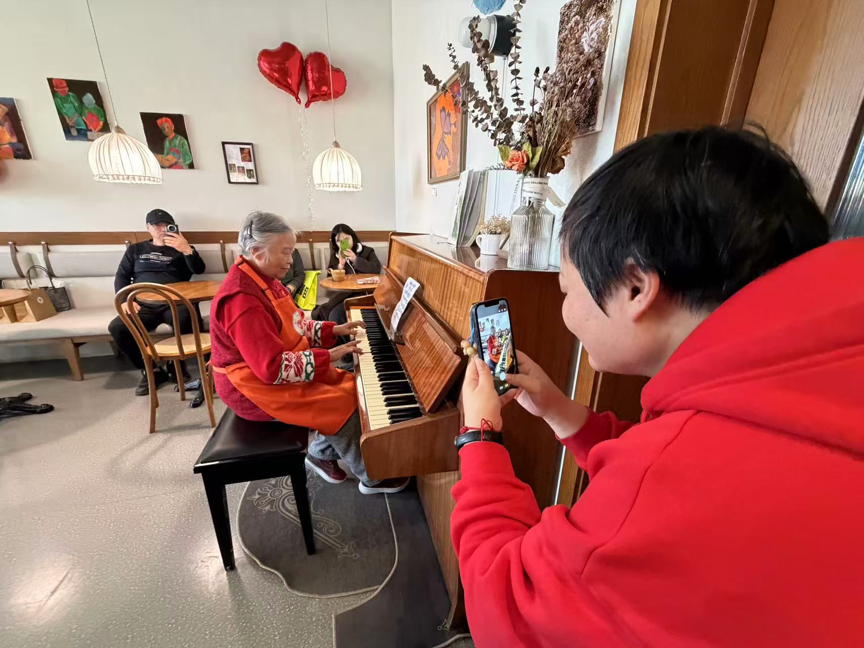 午后,咖啡店里的客人多了起来。78岁的熊奶奶套上志愿者的红围裙,坐到钢琴前,一曲《我的祖国》演奏完毕,赢得满场掌声。熊奶奶的女儿告诉记者,妈妈做了一辈子教师,退休后自学钢琴,今天全家人特意来咖啡屋做一天志愿者,度过一个与众不同的春节假日。游客王女士被这里的人文气息和“社区邻里感”所吸引,她说自己第一次来辛庄,没想到过年还能体验到这样一份独有的新春浪漫。在“云朵朵厨房”面包店,结账的顾客排起了队,主理人介绍,今年的市集横跨春节假期,由于摊位多、业态丰富,吸引了大量游客,是新春市集开办以来业绩最好的一年,店里的营业额比平常多出五成,正是这份青年创客云集的聚合力,让辛庄的美丽乡村新风采一年比一年好。
