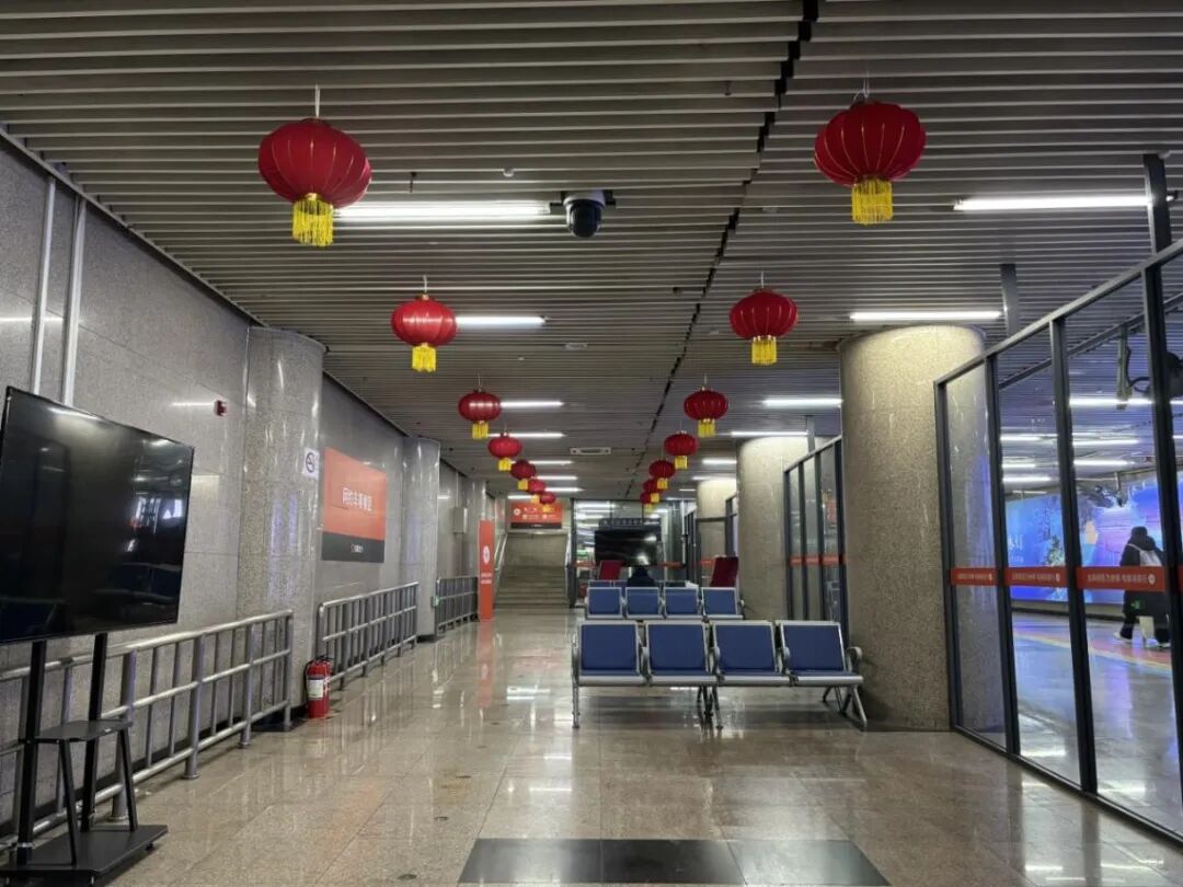 同样暖意融融的还有北京北站负二层。春运前夕,这里完成“硬核升级”:智慧“叫号”系统让网约车信息实时上屏,旅客不再盲目寻车,语音播报精准指引上车点;车辆通道墙面焕然一新,祥云彩绘搭配荧光地贴,即使断电也能清晰指引逃生方向。刚下火车的张女士惊喜地说:“地下空间亮堂堂的,还有绿植和新年装饰,等车的心情都变好了。”除此之外,北站地区管理办公室还在落客区设置了“暖心驿站”,姜糖水、暖宝宝、轮椅、急救包整齐摆放,一抹“志愿蓝”穿梭其间,为旅客提供全天候服务。