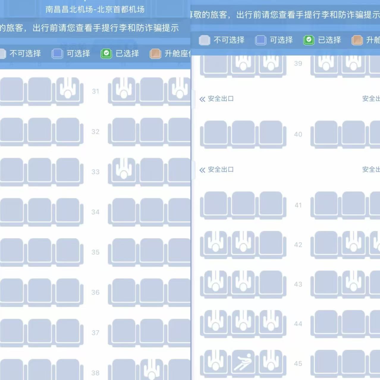 常年出差的刘先生遭遇过更为极端的“全舱锁座”。1月23日中午,他购买了当天傍晚从南昌返京的机票,购票后线上选座时却发现,经济舱座位仍有大量空余,可就是一个都选不了。刘先生致电航空公司客服,对方告知“只能到值机柜台选座”。在连续拨打了四五通投诉电话后,航空公司才给他分配了座位。