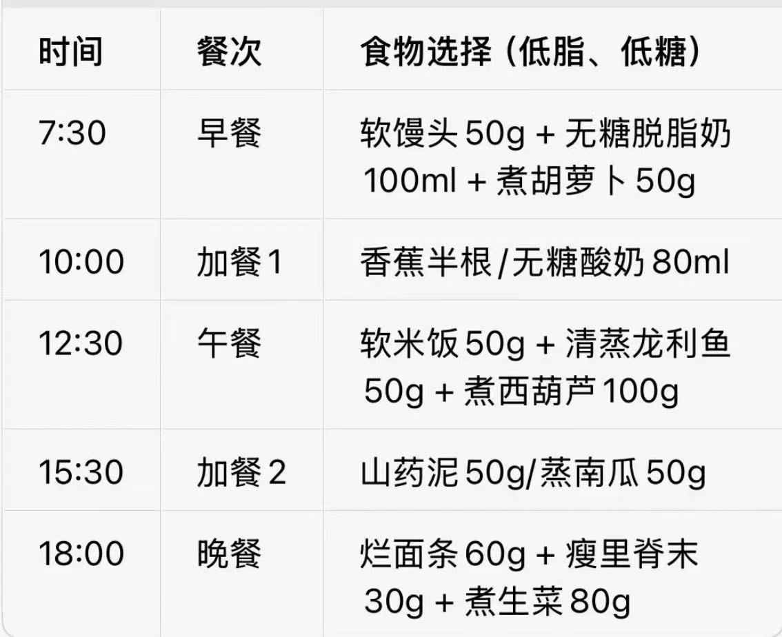 注:睡前可考虑再加餐一次,防止夜间低血糖。