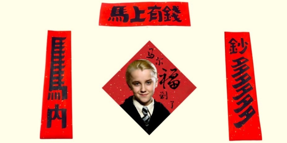 “00后”追捧的春联也有新意。其中“马尔福春联”就在平台上火了起来,就是把《哈利·波特》里的主人公德拉科·马尔福和“福”字结合起来的表情包对联。数据显示,“马尔福春联”相关笔记阅读量达10.23亿,同时引发海外用户关注,也带火了一波中国春节贴福字的文化。