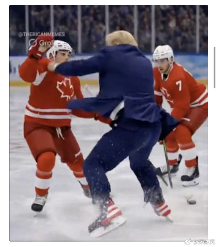 视频显示,比赛进行到一半时,特朗普脱下手套,并赤手空拳殴打加拿大运动员。比赛最后,特朗普再次进球,有外媒形容此举为“一举拿下加拿大”。