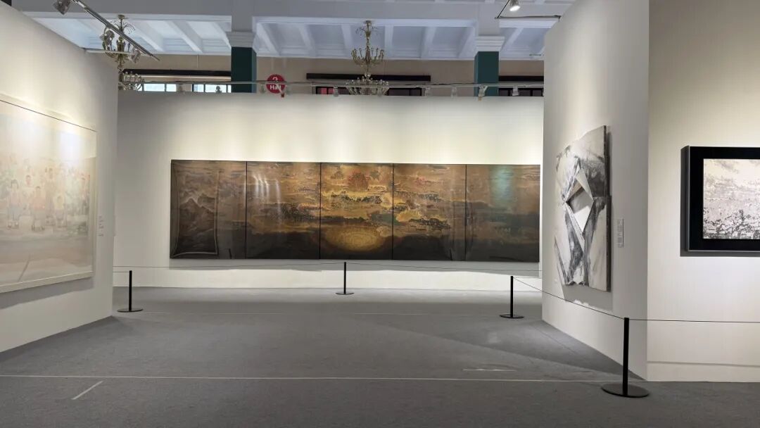 下一步来到2号馆和12号馆继续参观主题展,展览分为裂变、生长、流动、淬炼、和音五项子主题,广泛探讨战争与和平、科技与传统、自然与人类的共生关系以及身份认同、文化根源等深刻议题,让观众在风格多样的笔墨与色彩中深入思考,感受跨越国界的文明共鸣。