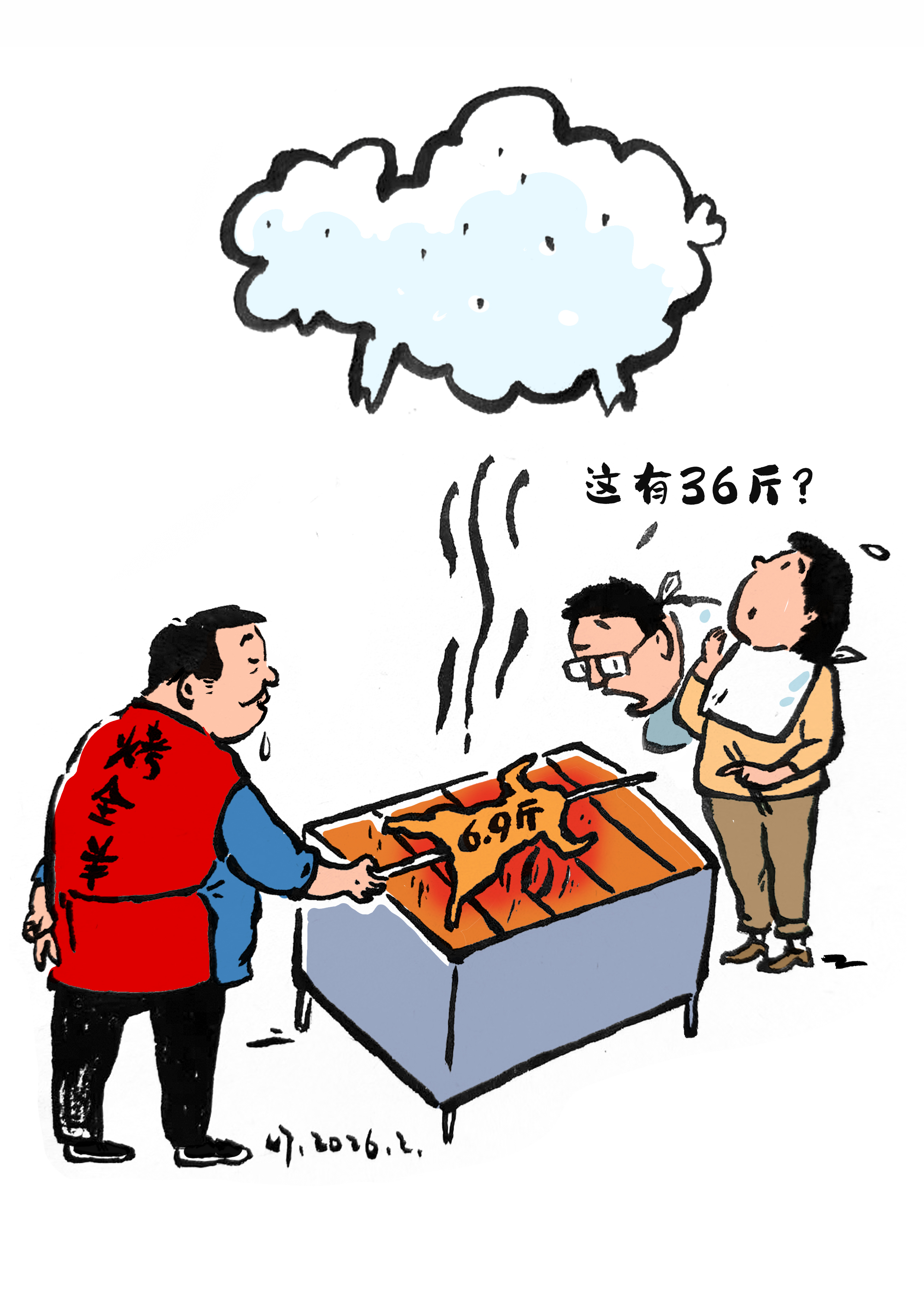 36斤的活羊烤完上桌只剩6.9斤!面对消费者质疑,重庆某店家辩称喜欢运动的羊和不喜欢运动的羊,烤出来的分量不一样。据通报,烤羊缩水,是商家非正常持续投喂玉米、干草等饲料和水虚增活羊重量所致。如此“肥”羊,纯属损人肥私。