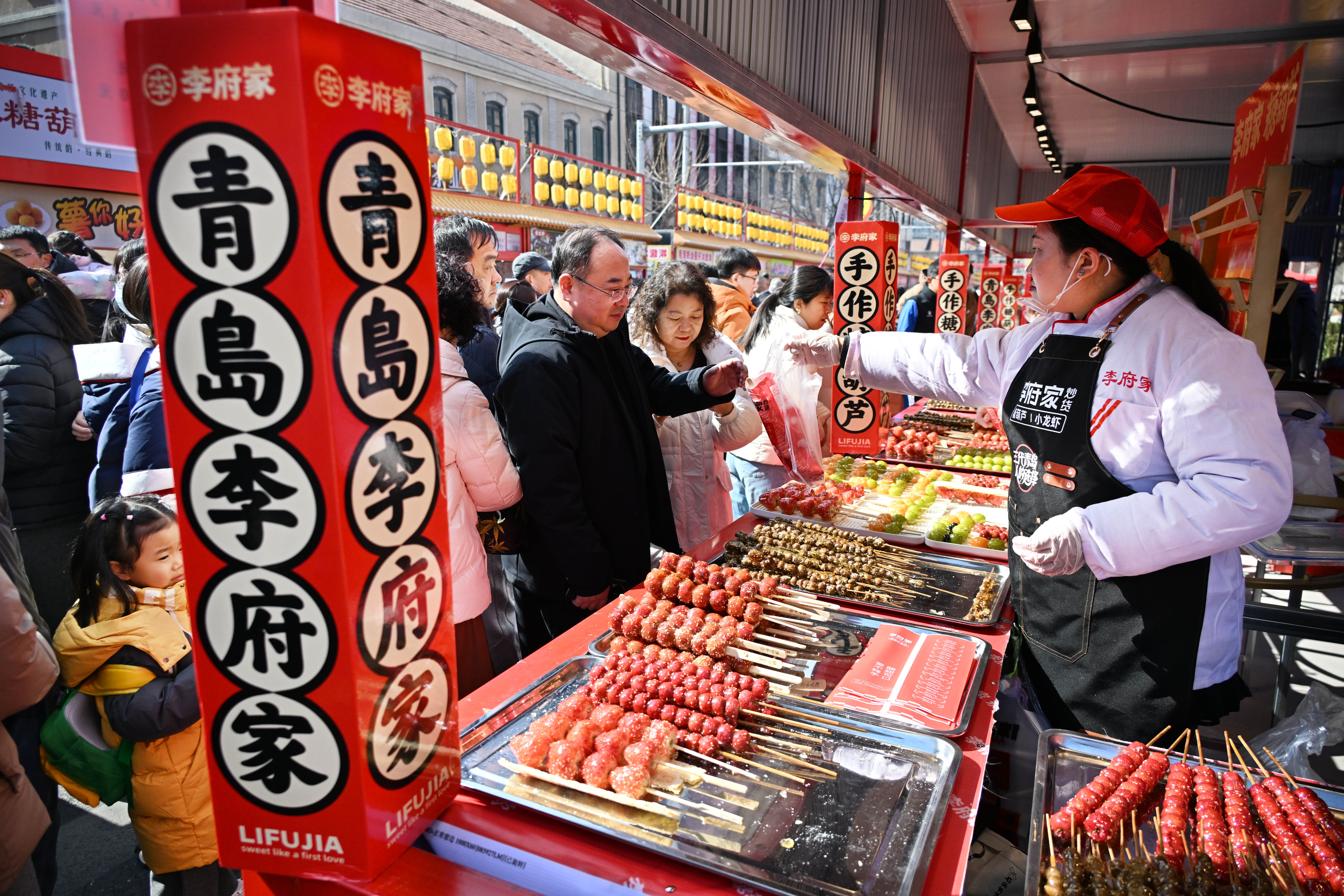 2026年2月17日,2026年青岛萝卜·元宵·糖球会在山东青岛市北区大鲍岛文化休闲街区开幕。这一当地春节传统民俗盛会汇聚了糖球制作、非遗展演、特色文创及地方美食等,现场人流如织,年味浓郁。
