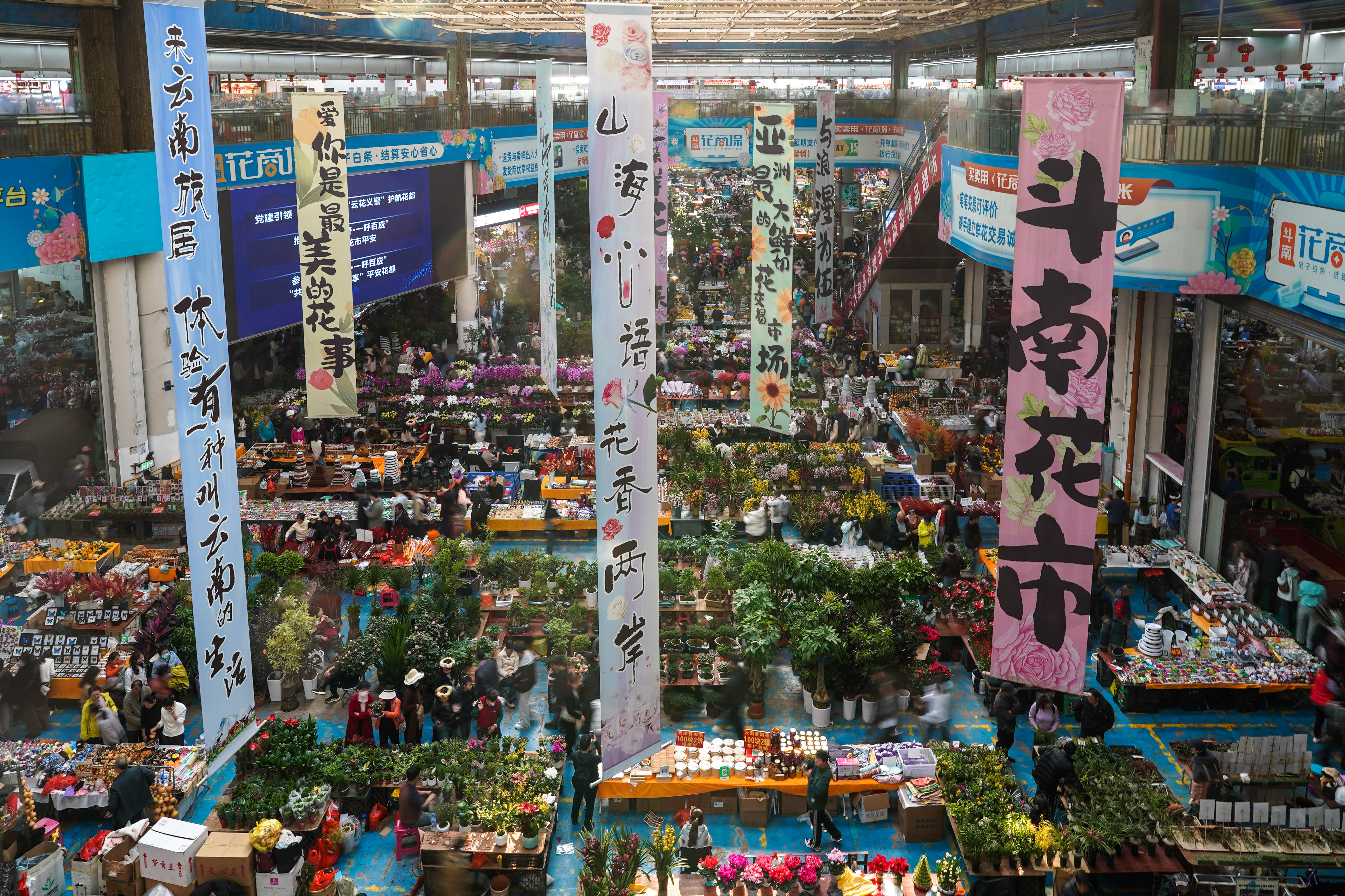 今年春节,被誉为“亚洲花都”的云南昆明斗南花卉市场正常营业,“鲜花+旅游”的发展模式带来了涌动的人潮。这是游客在斗南花卉市场内选购鲜花(2026年2月10日摄)。