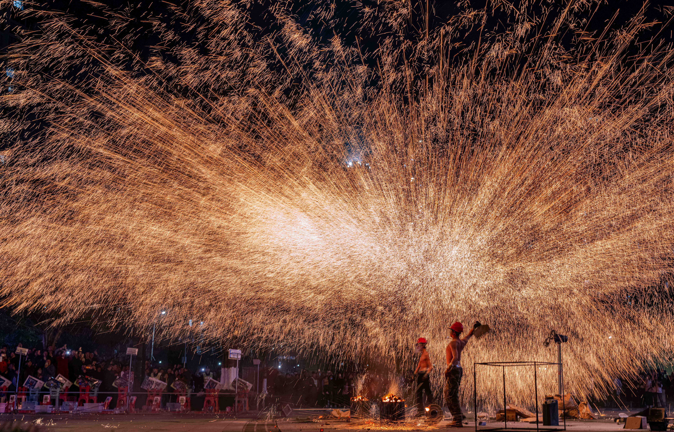 2026年2月19日在四川巴中市体育馆广场拍摄的打铁花表演现场。春节前夕,文化和旅游部启动2026年全国春节文化和旅游消费月,各地相应推出丰富的应季文旅产品,举办约3万场次文旅消费活动,发放超3.6亿元消费券等消费补贴,为大众文旅庆新春提供更多场景。