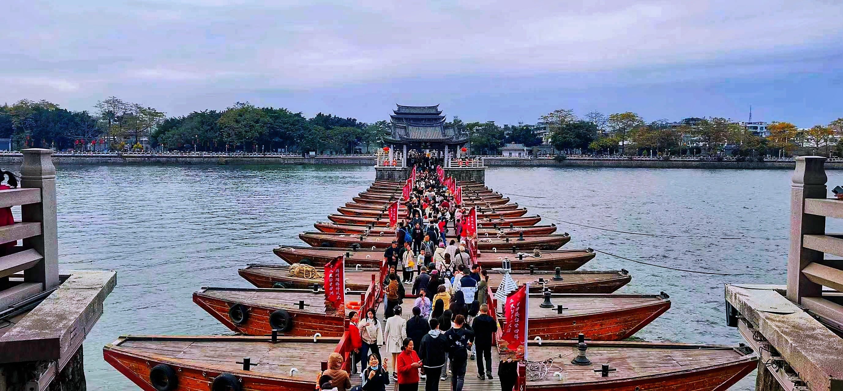 广东潮州广济桥开合自如,集浮桥与石桥于一体,近800年屹立不倒,见证岭南水陆交融的市井繁华。