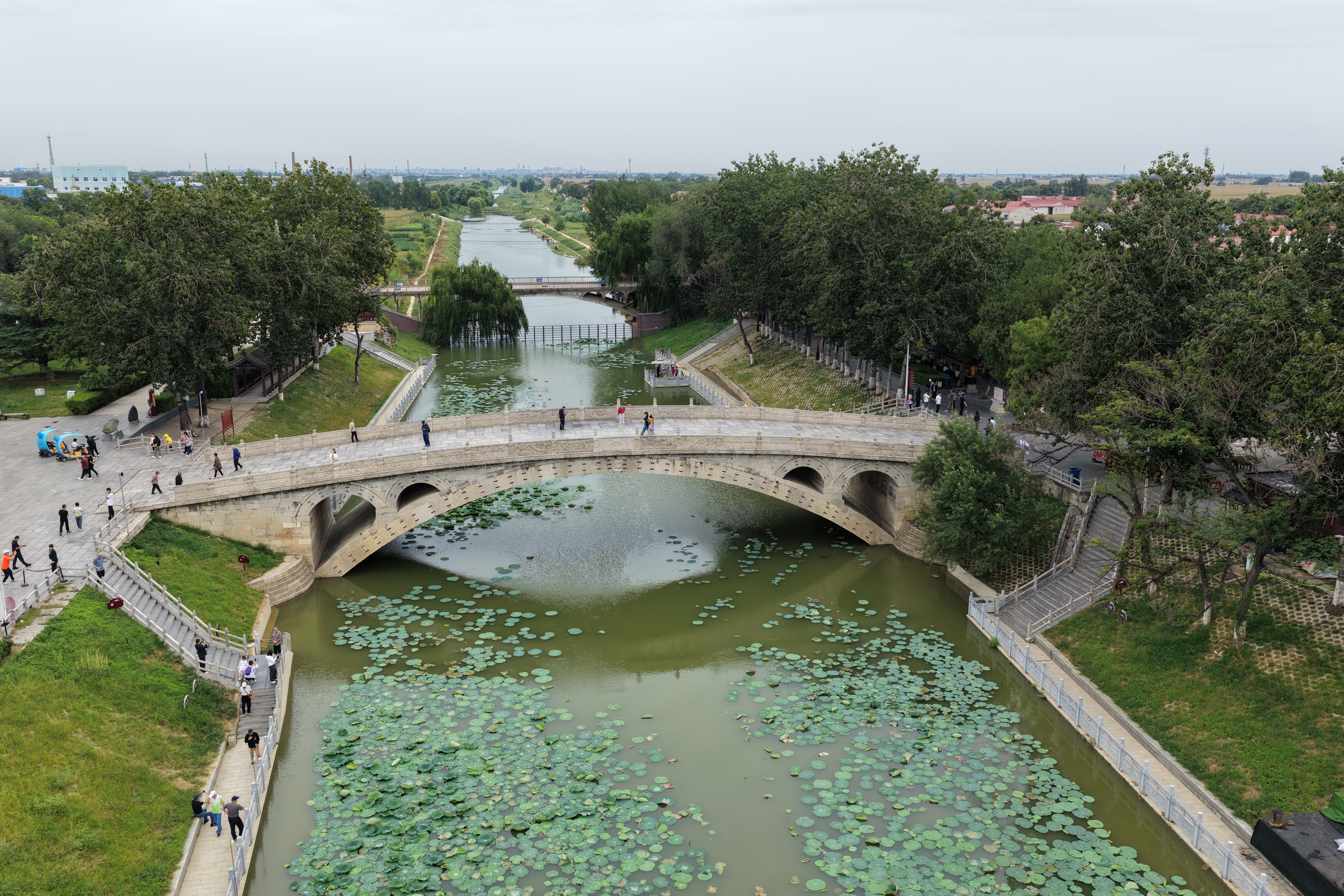 河北赵州桥以隋代匠心独运,开创敞肩石拱之先,距今1421年,是古代工程技术的巅峰见证,当之无愧的古桥之首。