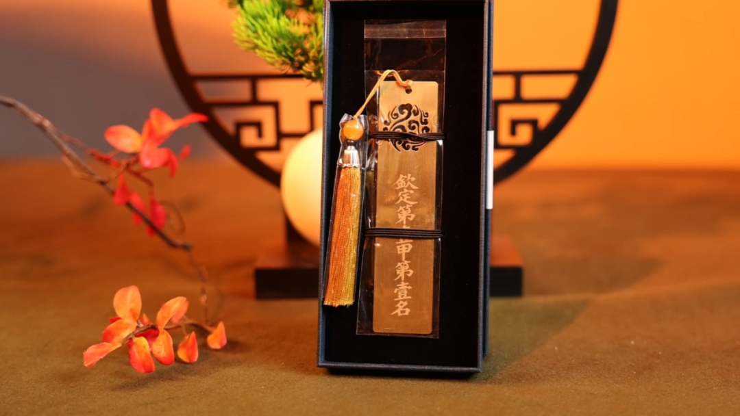 铜刻祥瑞,折桂同途。金属镂空的设计让书签更具质感与质量,将沉甸甸的知识定格在重要的一页,祝愿学子不仅摘得桂冠,更能与伙伴共享这份荣耀,顶峰相见。