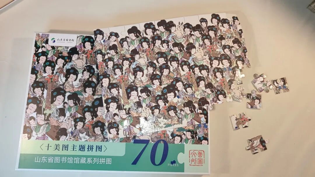 “十美主题拼图”选取《十美图》中一位美人进行Q版设计,70块碎片的难度恰到好处,解压放松,完成后的拼图还可作为桌面装饰,为生活增添一抹古典趣味。
