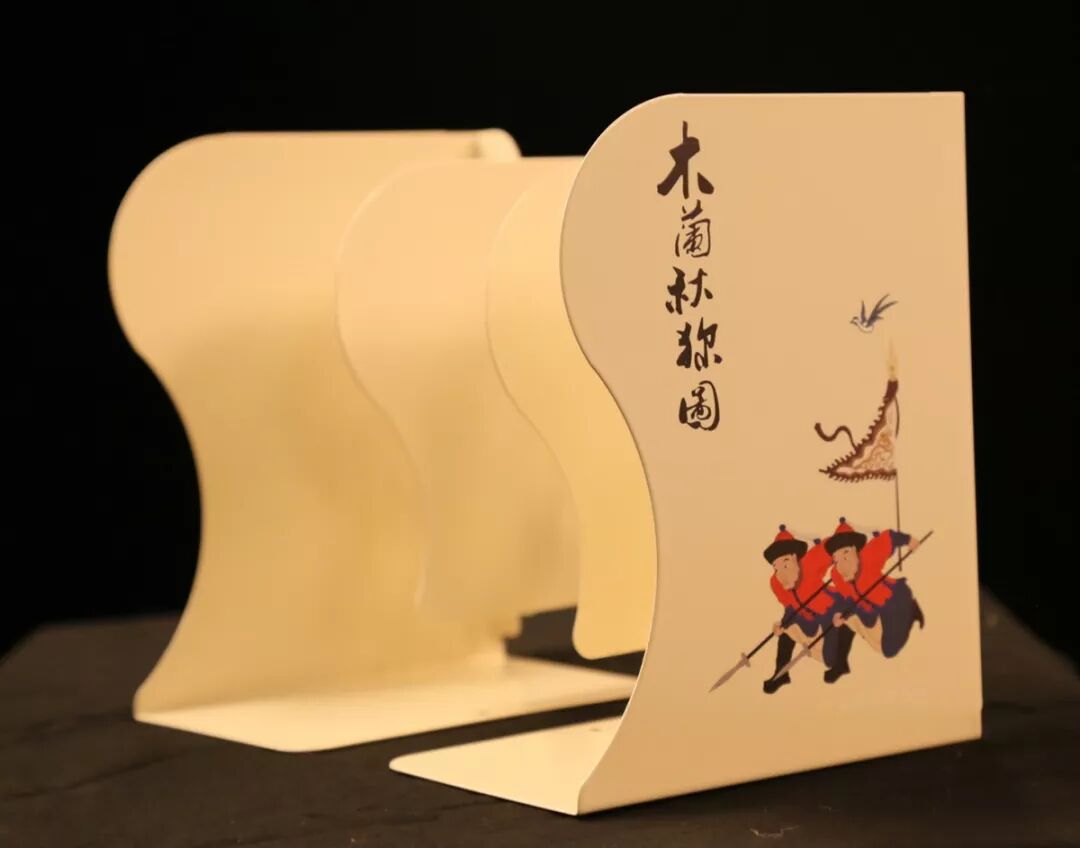 “木兰秋狝书立”采用稳固的结构设计,轻松支撑起各类书籍,防止书籍倾倒散乱,书立表面雕刻或印制画卷中的恢弘场景,为书房增添一抹古典庄重的氛围。