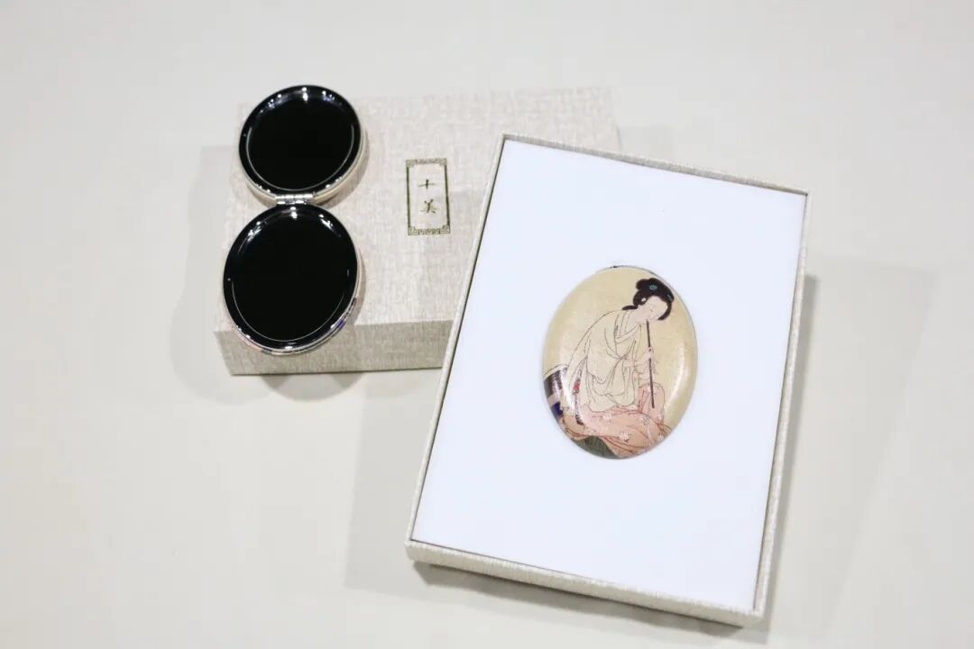“十美镜”以冷枚《十美图》中仕女临镜的雅致场景为灵感,镜面清晰透亮,镜身设计小巧精致,可在使用时不经意间邂逅古典美人的优雅气韵。