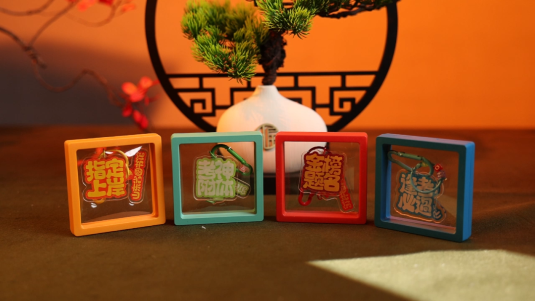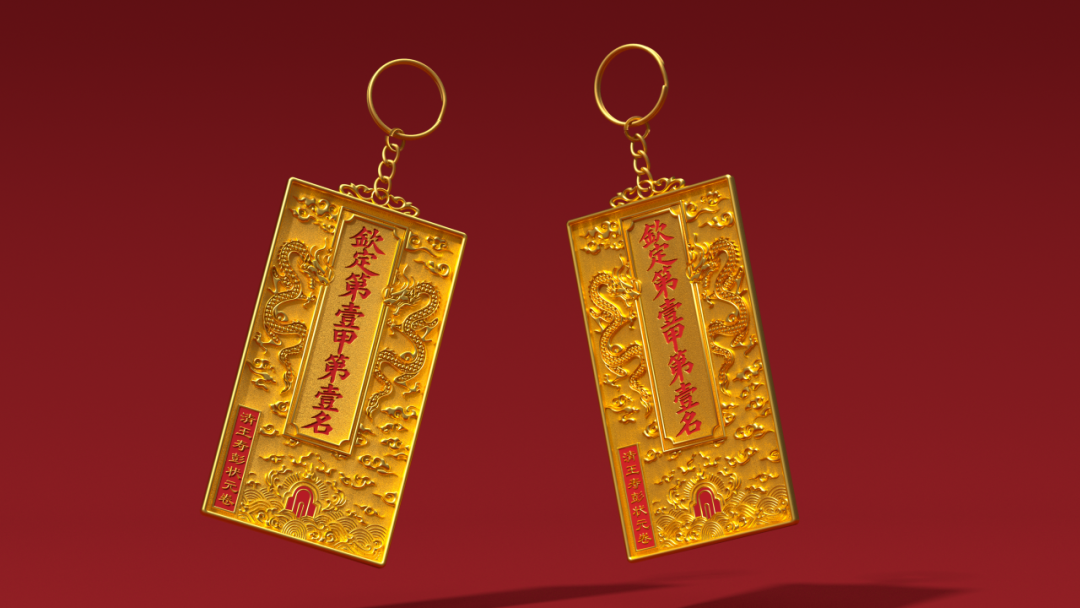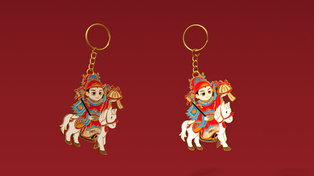 寓意“状元随行,马到成功”,将六百年模板印痕转化为金属艺术,衍生为包挂、钥匙扣等实用的日常饰品,期许状元随行,考运开挂。