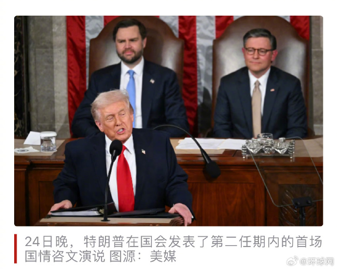 据美媒报道,特朗普当天在讲话中首先提及了边境安全、移民、经济和犯罪问题等议题。特朗普此次演讲正值其关税和移民两大关键政策接连遭受挫折之际。美国最高法院20日公布裁决,认定美国《国际紧急经济权力法》没有授权总统征收大规模关税,特朗普随后签署行政令终止部分关税措施。而在此之前,由于联邦移民执法人员在明尼苏达州暴力执法枪杀两名美国公民,国会民主和共和两党未能在国土安全部临时拨款问题上达成共识,国土安全部于14日开始陷入部分“停摆”。