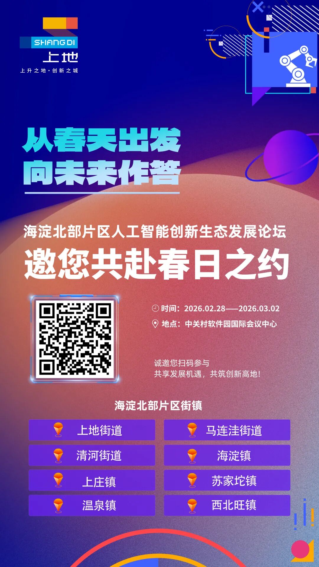 本次论坛是2026年海淀区经济社会高质量发展大会北部片区分论坛,由上地街道联合北部片区其他7个街镇共同举办。活动采用“会展+活动+服务”联动模式,设置4大功能展区、近10场主题活动、近百家参展企业……在三天时间里,为优秀企业搭建技术交流、资源对接的平台,也为市民朋友带来“看得见、玩得转”的AI体验之旅。