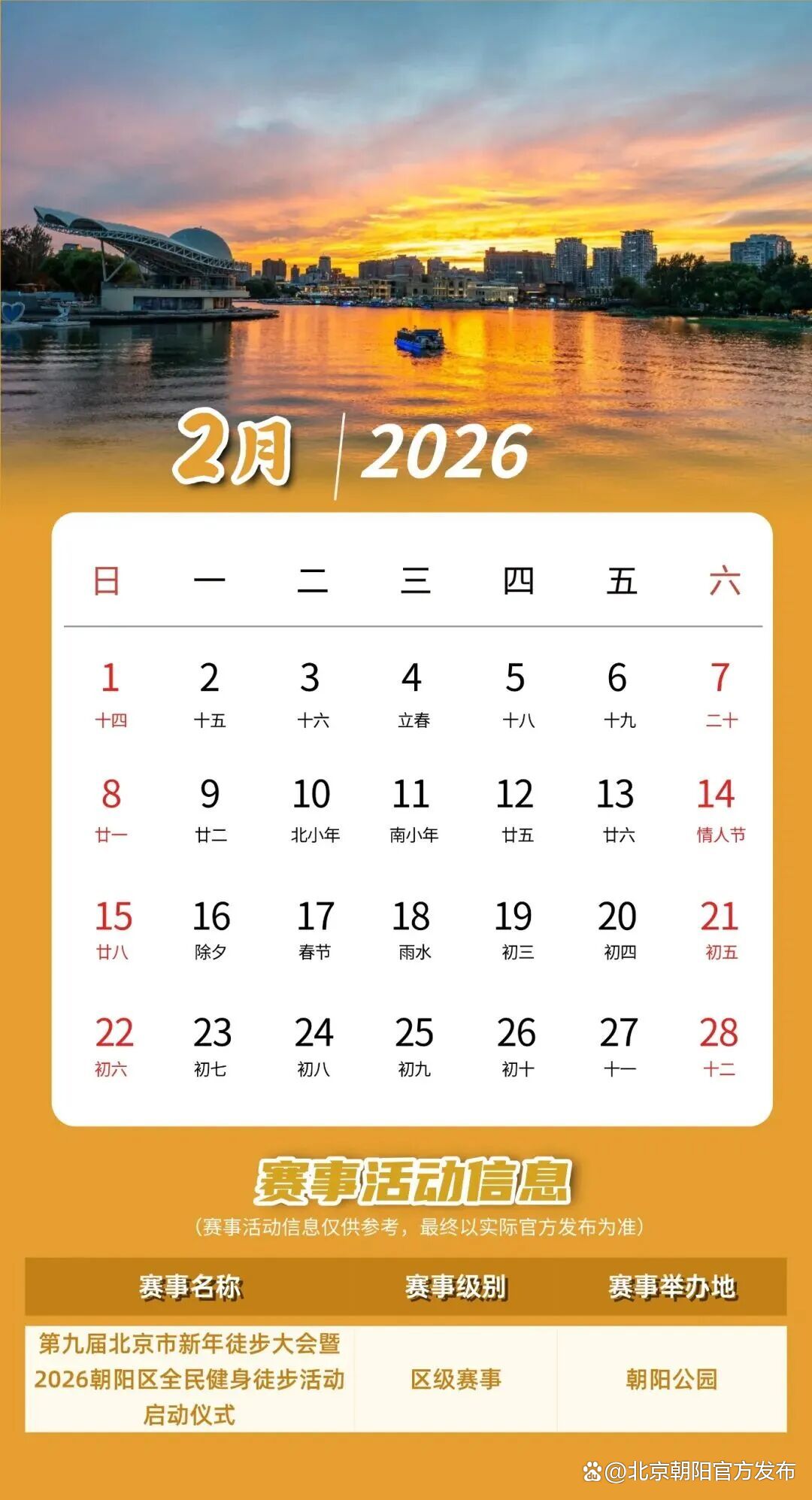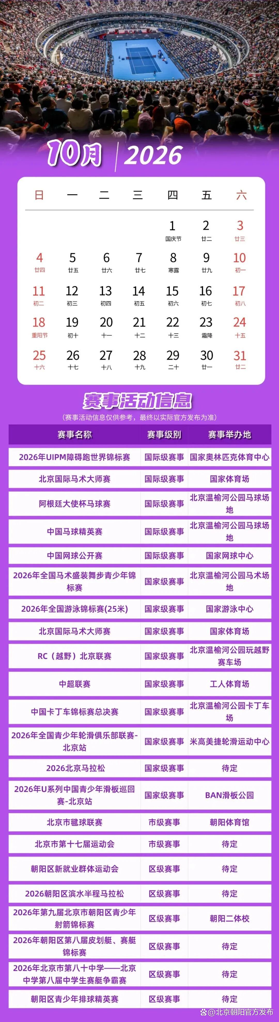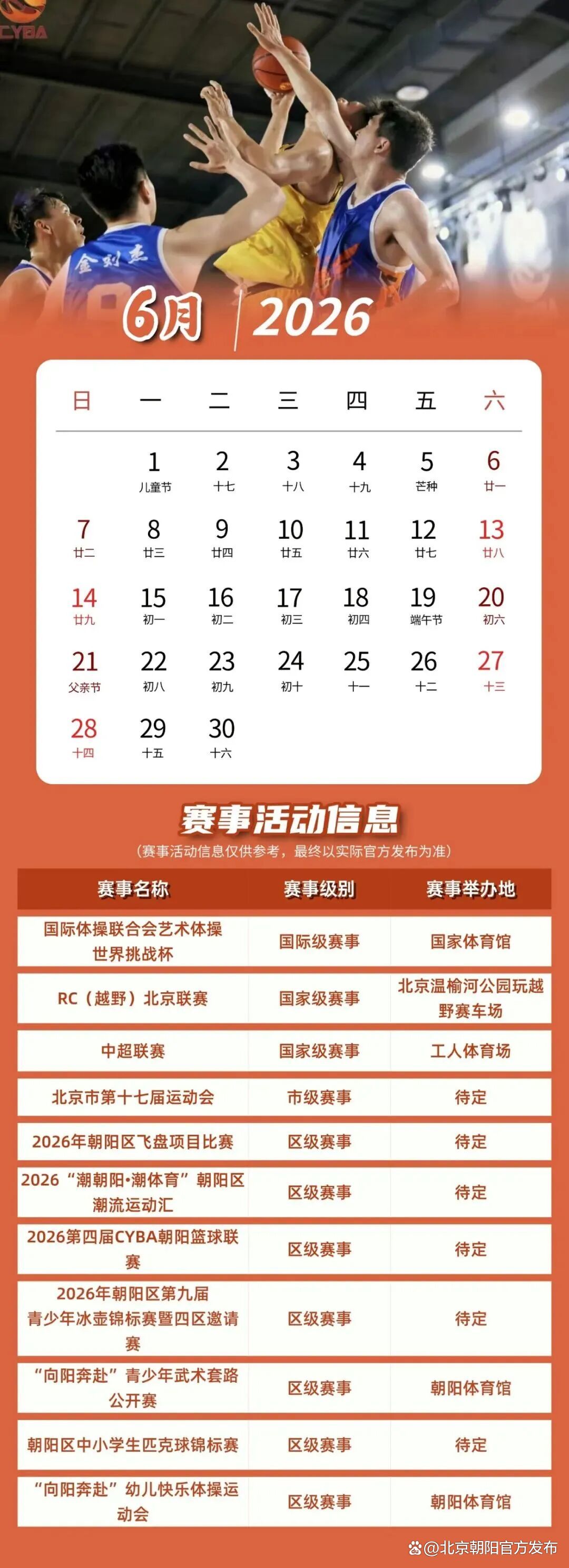 《2026朝阳体育赛事活动日历》