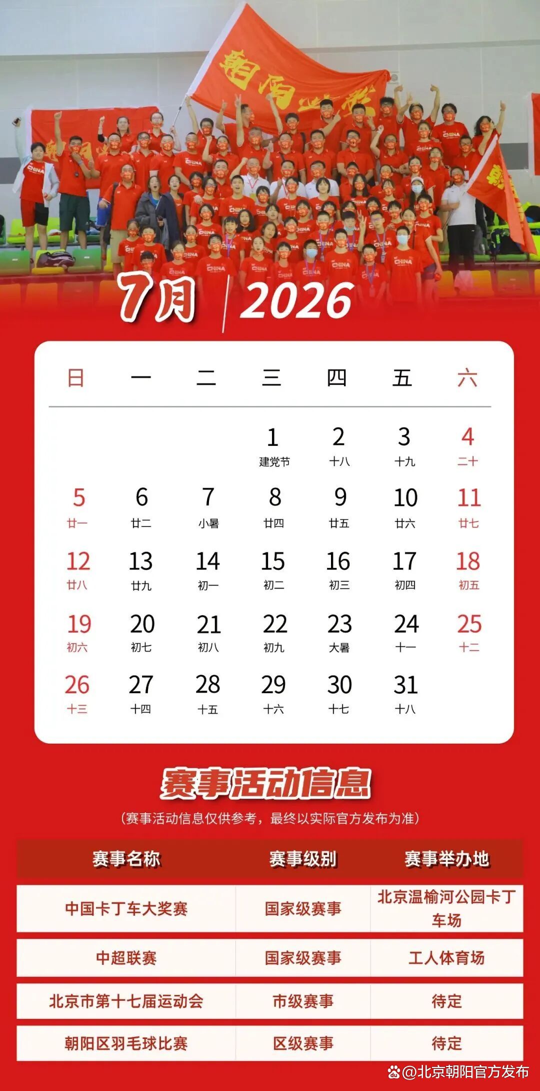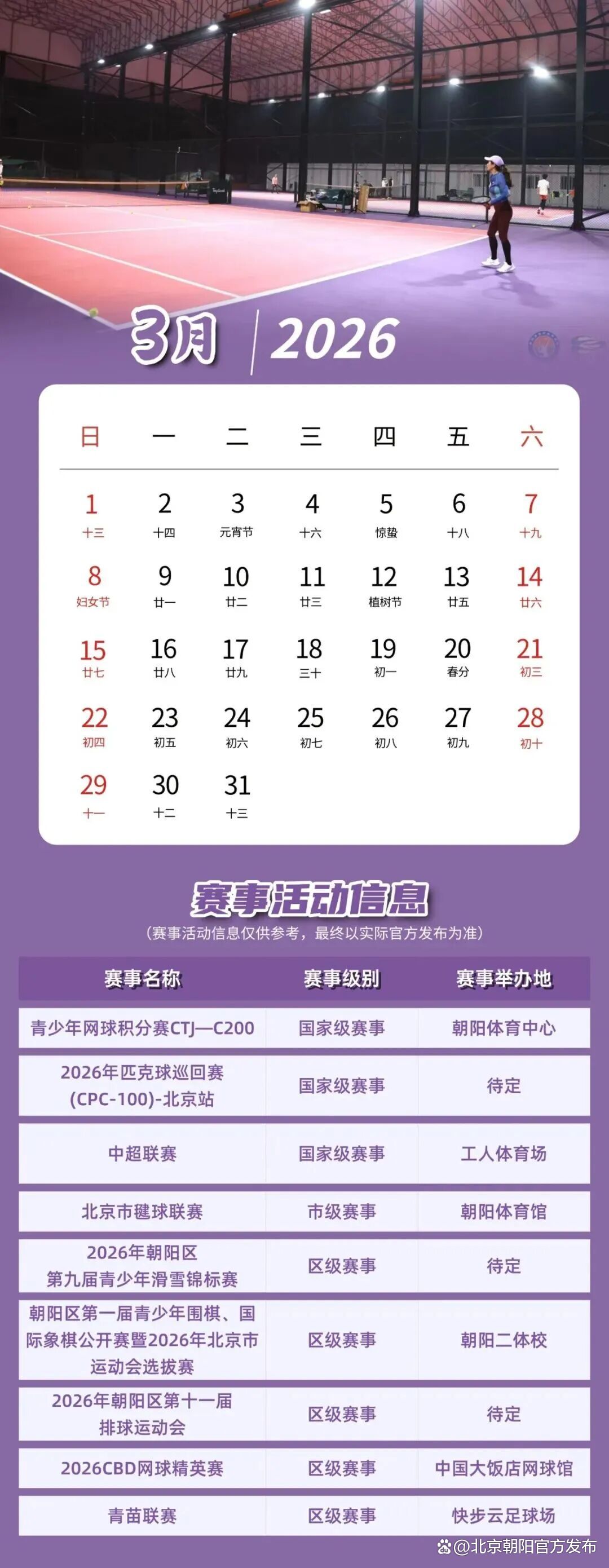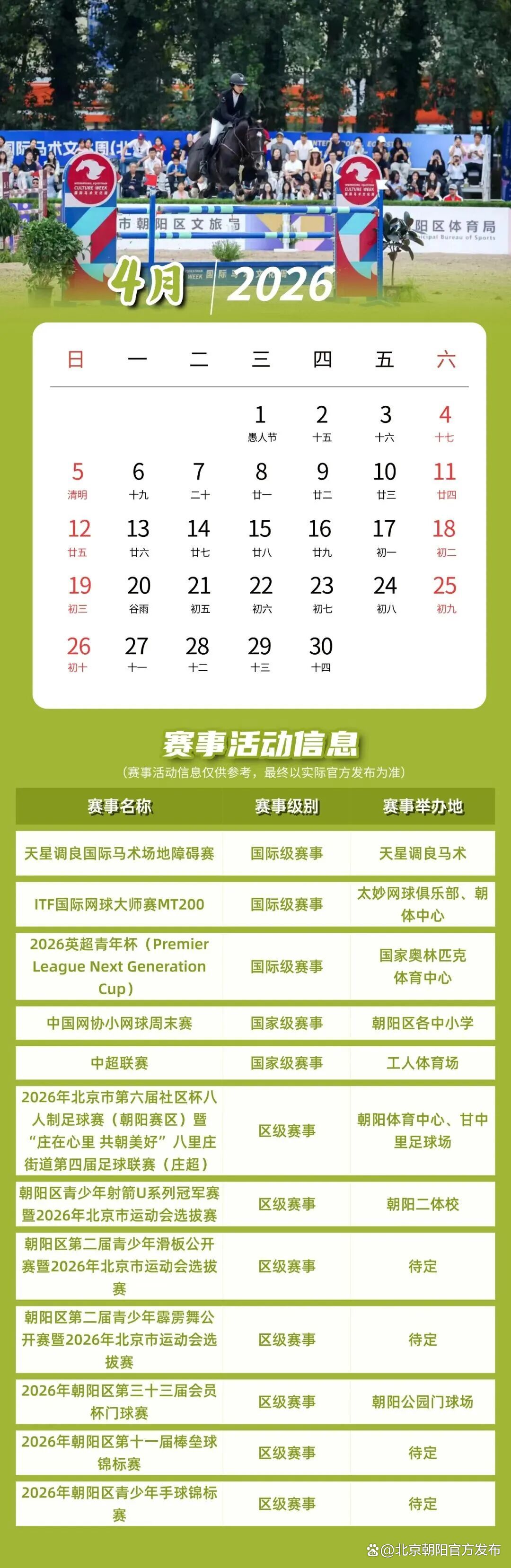 《2026朝阳体育赛事活动日历》