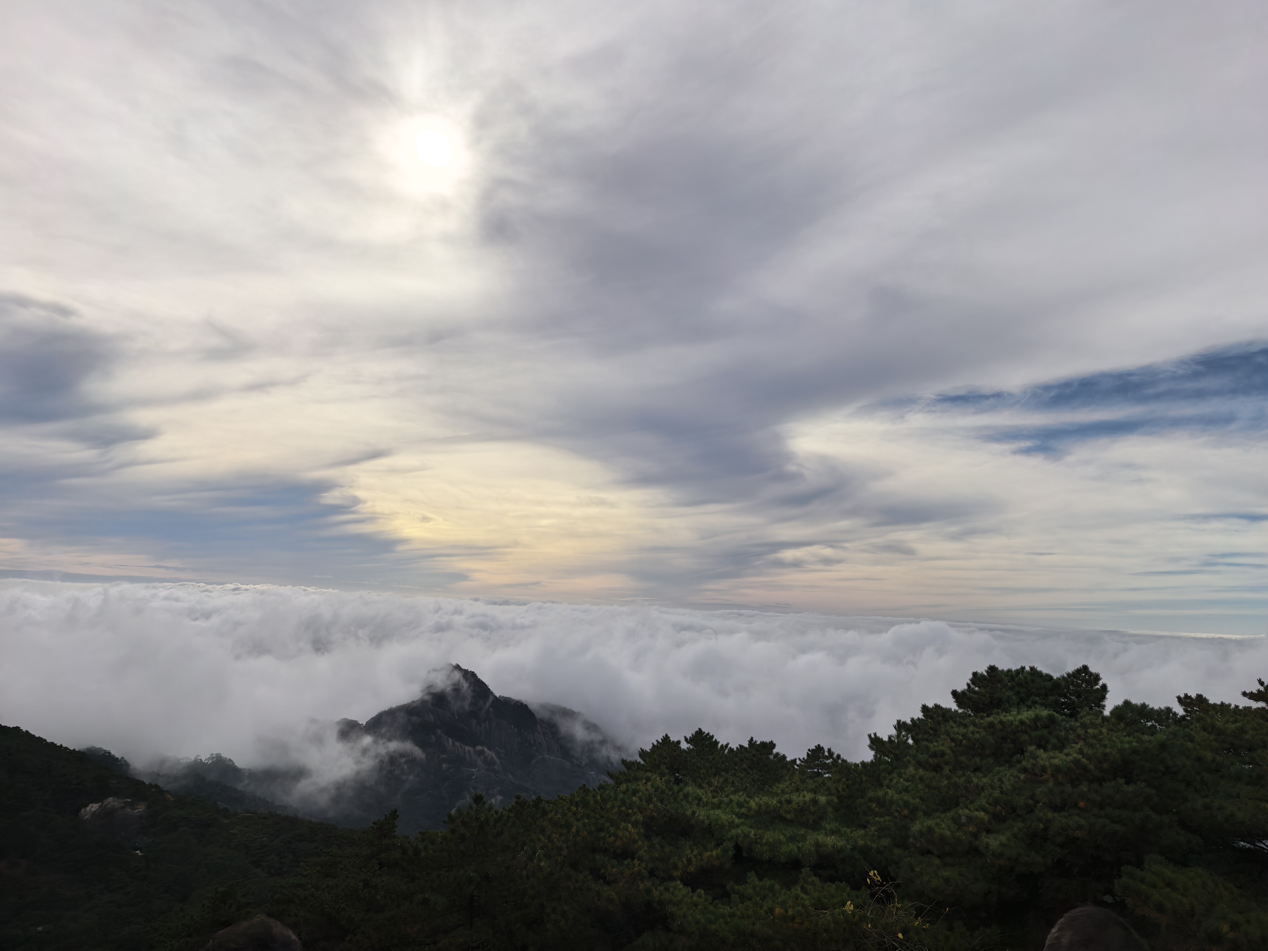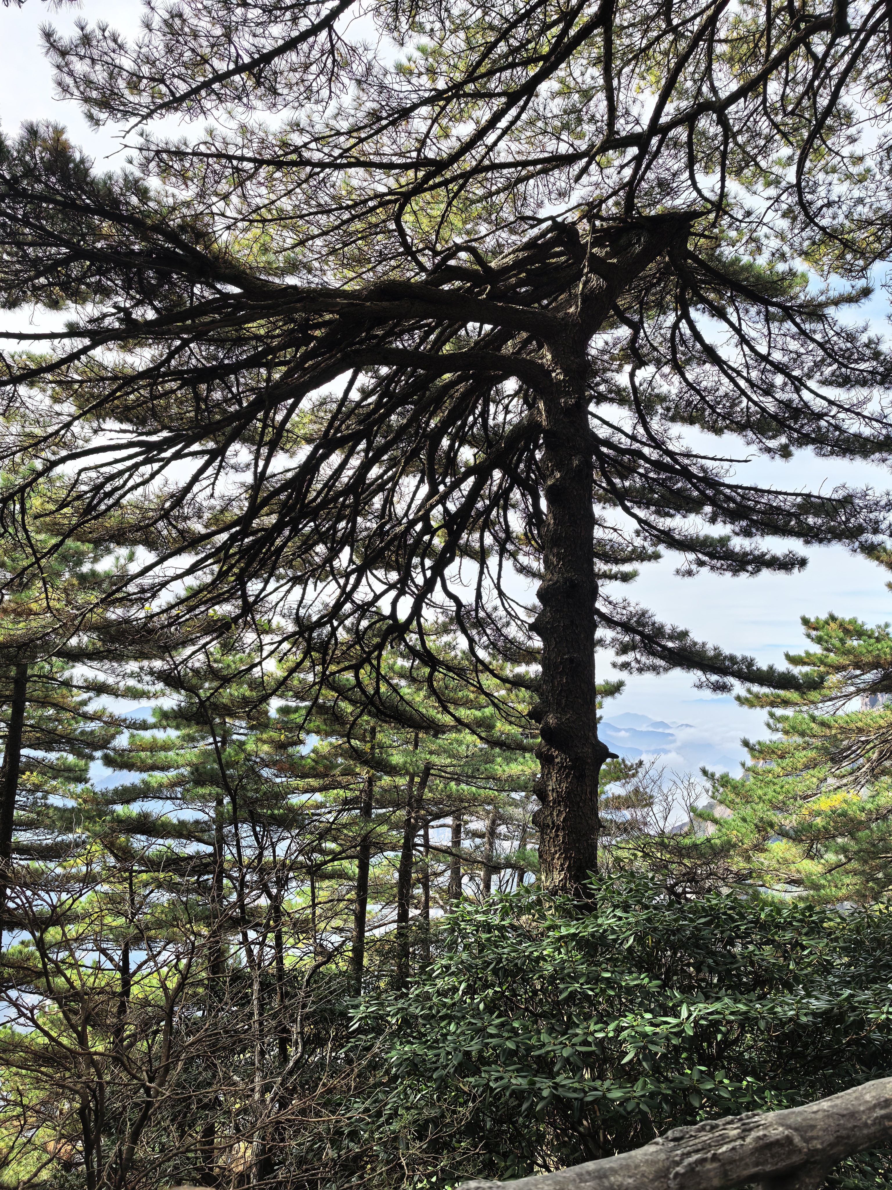 清晨,我前往始信峰。沿着蜿蜒的山径前行,两旁的奇松姿态万千——有的如龙爪探海,有的似凤凰展翅,有的像老僧入定。抵达峰顶的那一刻,眼前的景象让我久久无言:远处的群峰在云雾中若隐若现,宛如一幅刚刚落笔的淡墨山水;近处的松树傲立悬崖,枝干遒劲如铁,针叶苍翠欲滴。我静静地站在那里,感受山风拂过面颊,聆听松涛在谷间回荡,那一刻,我仿佛不再是一个观者,而成为山的一部分。