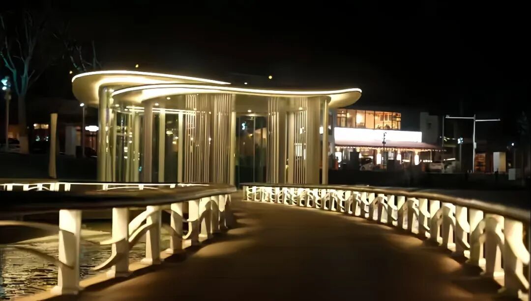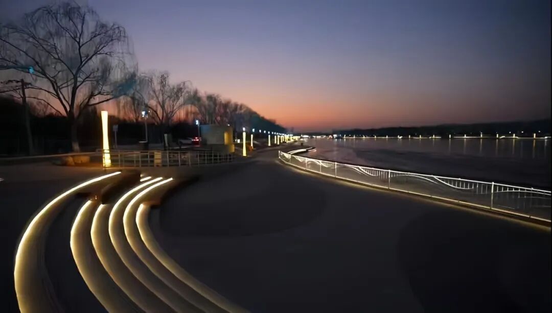 待到暮色四合,罗马湖便切换成“夜景模式”,氛围感直接拉满。两岸华灯初上,144根灯杆次第亮起,暖黄色的灯光温柔勾勒出优美的湖岸轮廓,光影流转间,将湖面晕染成一片温柔的亮色。岸边的景观灯、草坪灯错落排布,与水中的倒影交相辉映,灯光映水、水伴灯行,勾勒出一幅流光溢彩的湖畔夜景图,温馨又浪漫。