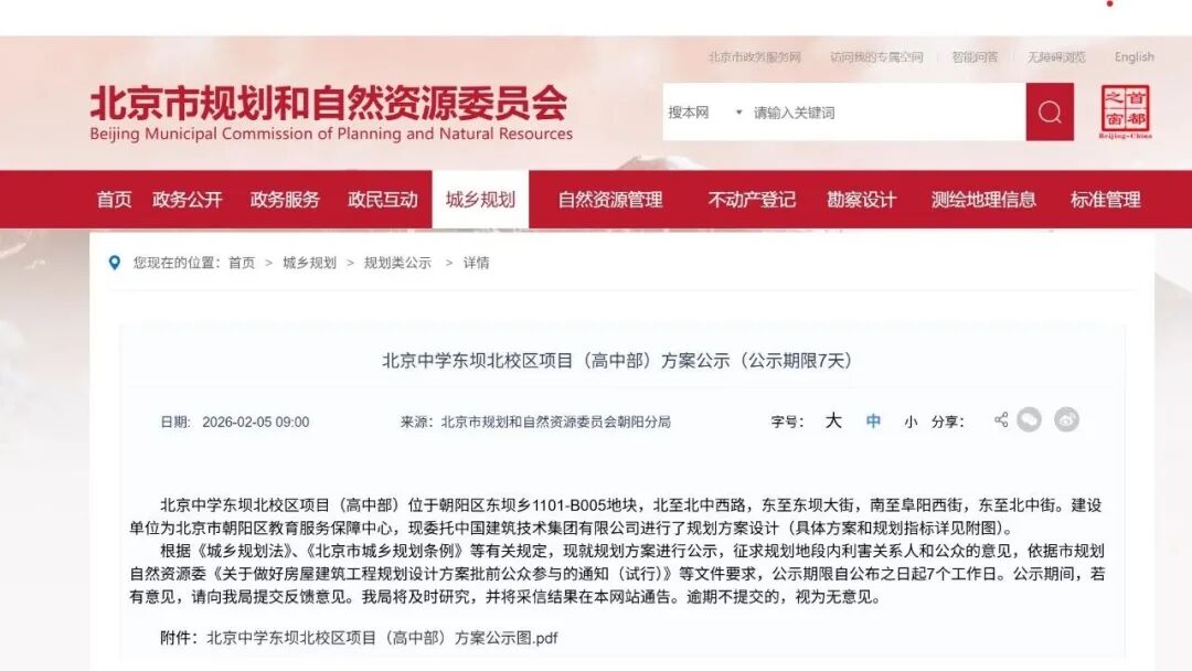 北京中学东坝北校区是目前朝阳区教育领域规模最大的单体学校建设项目,已于2025年9月启用新校区。学校建设项目共包括三期,建成后将为辖区居民提供高质量教育资源,扩大优质教育辐射圈。
