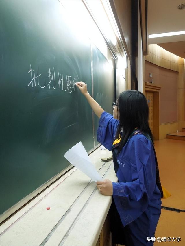 拍摄研究生毕业照时,张晨特意到教室,拍下想象自己作为教师写板书的样子