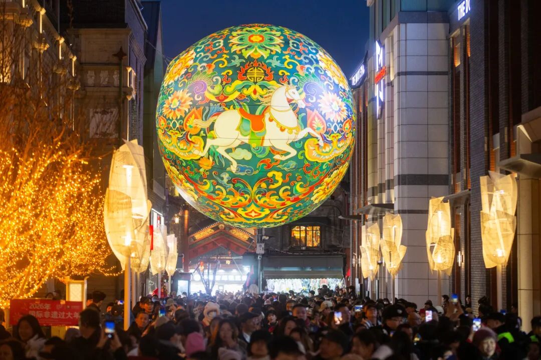 以“骏马迎新岁·坊间北京范儿”为主题的2026北京坊新春文化坊会以北京坊为核心,串联西河沿等多片区全域联动,解锁“视觉+体验+消费+研学”全维度玩法,打造沉浸式新春场景。“国际非遗过大年”汇聚五大洲14国24个非遗摊位,让市民游客不出京城打卡环球年味,感受中外文化碰撞的独特魅力。廊房头条复原7组多层宫灯,百米观灯长廊重现百年灯街雅韵,8大打卡点位遍布坊间,白日赏景、夜晚观灯,沉浸式体验国潮光影与老北京年味的交融。