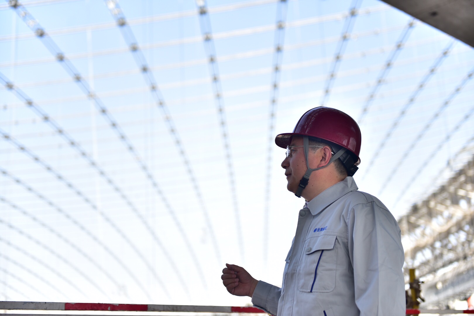 “每一天都得掰成两天用。”王泽强说。偏偏春节前又下了几场大雪,气温骤降。工地里没有像样的办公场所,王泽强和同事就把计算机搬到了由脚手架和编织布搭成的简易宿舍里。在四处漏风的寒夜里,屏幕的微光照亮了王泽强的脸。他握着鼠标,一遍遍调整计算模型,三天不眠不休,最终让93米跨度的弦支穹顶结构完美成型。这一突破,标志着中国工程界在预应力钢结构领域成功打破国外垄断,实现了从科研、设计到施工的自主化,形成了一整套自主创新技术。