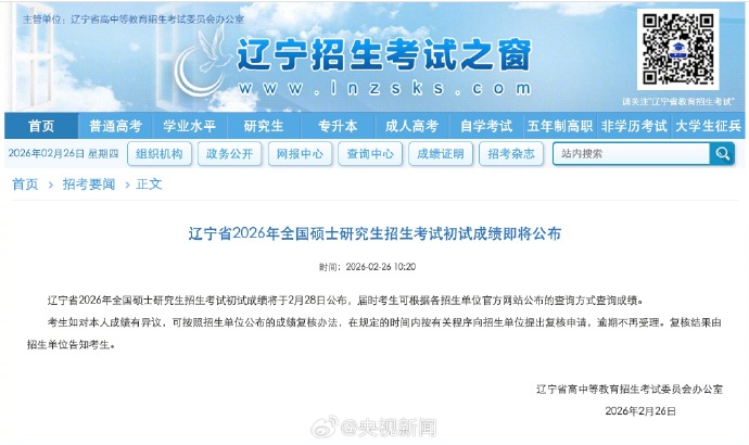 记者从多地教育部门了解获悉,各研究生招生单位已基本完成2026年全国硕士研究生招生考试初试阅卷工作,将于2月28日起陆续向考生开通成绩查询渠道。请考生密切关注报考招生单位官方信息,通过官方指定渠道查成绩。