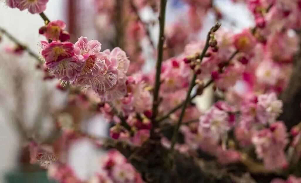 梅花展分为室内展和室外展两部分,室内展厅展陈面积千余平,展出盆景1000余盆,梅花盆景造型各异、暗香浮动,尽显梅之雅致。