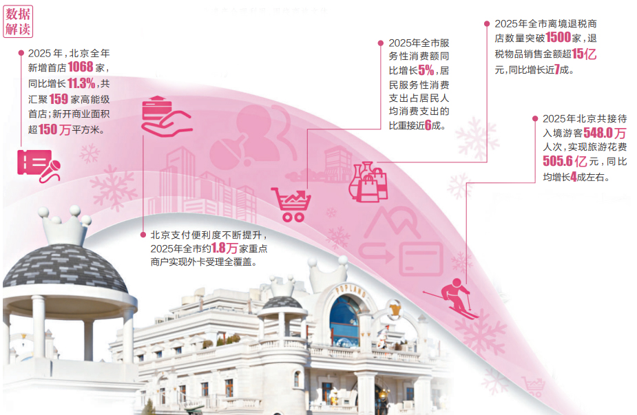 数据显示,2025年北京接待游客3.9亿人次,实现旅游总花费7159.3亿元,同比分别增长4.8%和6.5%;全市共接待入境游客548.0万人次,实现旅游花费505.6亿元,同比均增长4成左右。