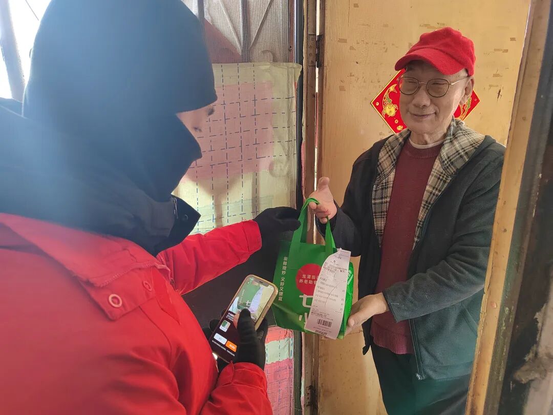“指尖一点,热乎饭就送上门了,太方便了。”上午10点,龙潭街道居民张阿姨坐在沙发上,在志愿者小李的指导下,打开手机里的京东APP,进入七鲜小厨点餐页面,点击养老助餐“长辈专区”,选好番茄炒蛋和嫩炒广东菜心,通过养老助餐卡一键支付完成下单。不到20分钟,配送员就提着保温餐箱上门,打开餐盒时,饭菜温度仍热气腾腾。