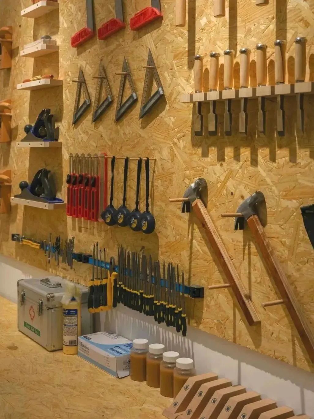 木工工坊传承传统榫卯工艺与实木手作文化。依靠锛、凿、斧、锯等传统工具,完成木作成品。木工工坊集文创售卖,手工制作、体验教学于一体。通过手作体验与课程,在一凿一斧间感受中国传统木艺的智慧与温度,学习古建筑知识。