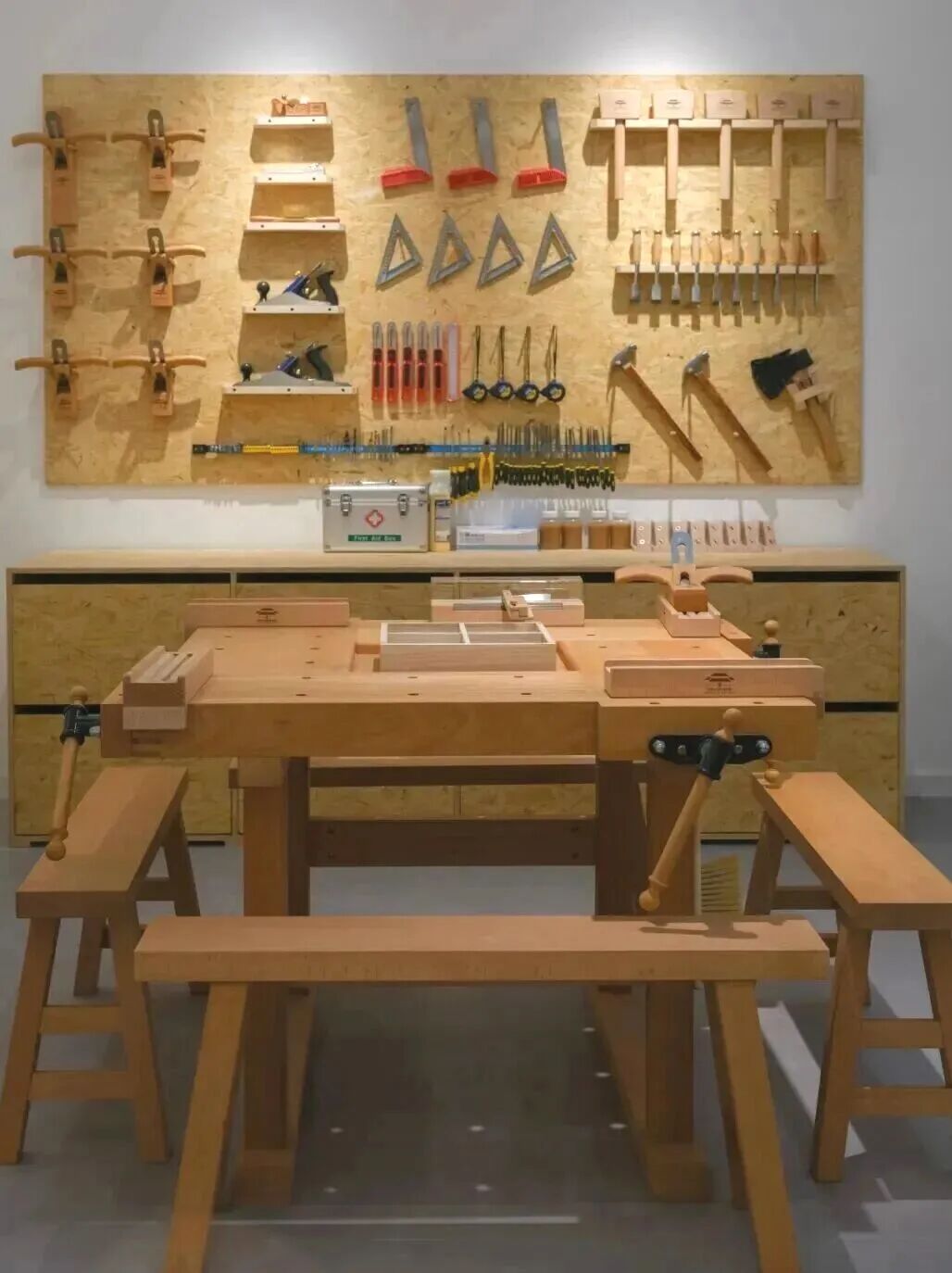 木工体验区则是专属的城市解压空间,特别适合亲子互动与零基础体验。在专业指导下,从设计到锯磨,亲手完成一件专属木艺作品,在刨花翻飞的治愈时刻里,培养专注力与动手能力,收获满满的成就感。