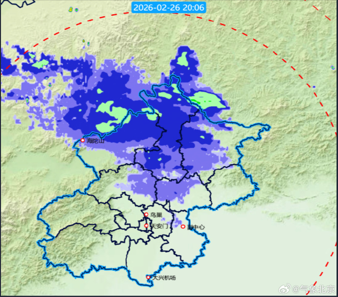 目前北京城区已出现飘雪。