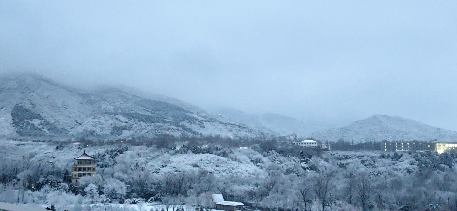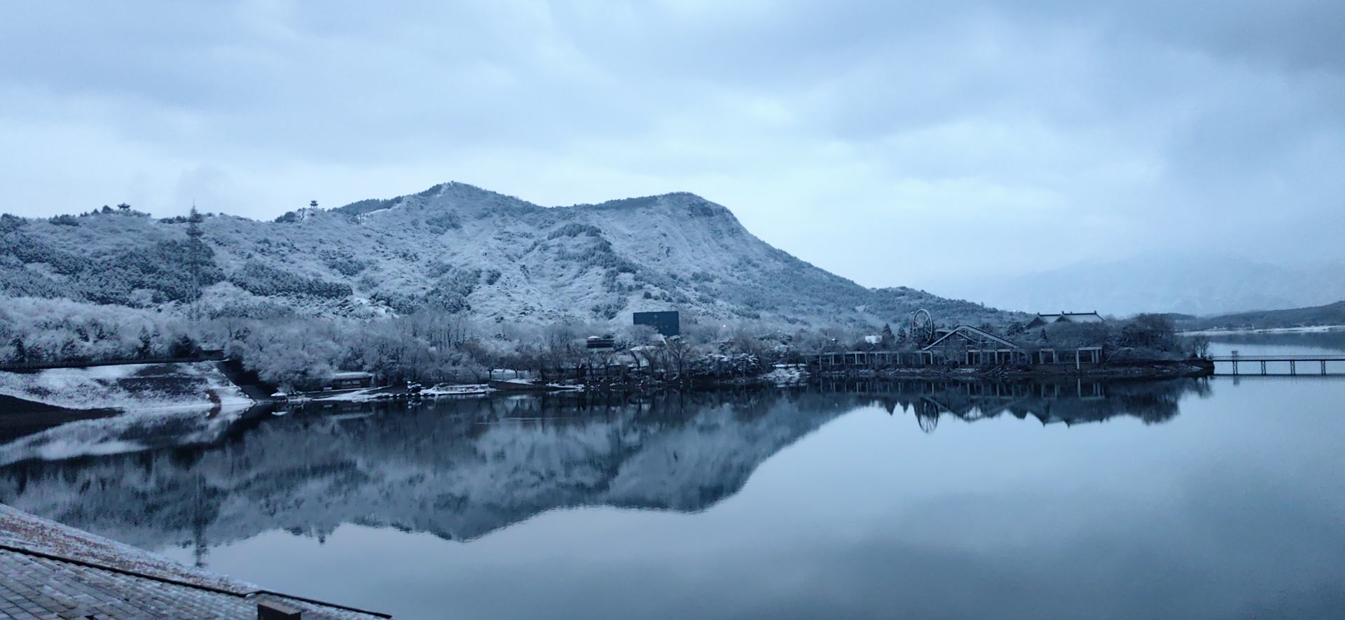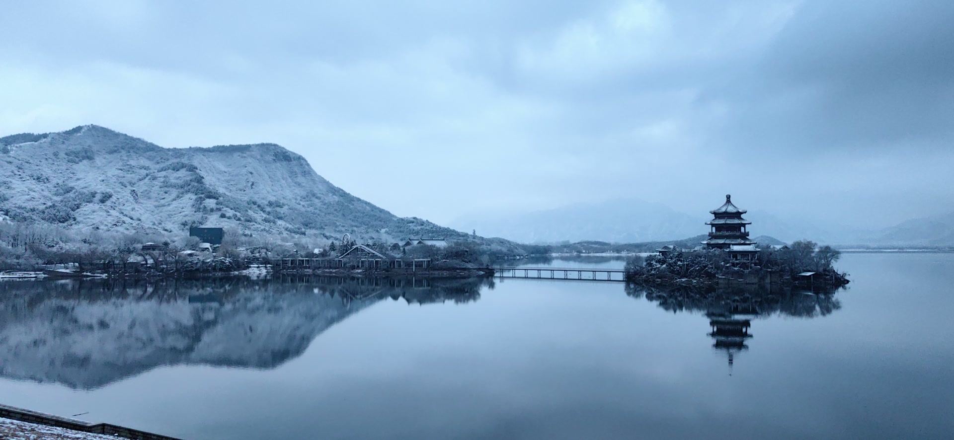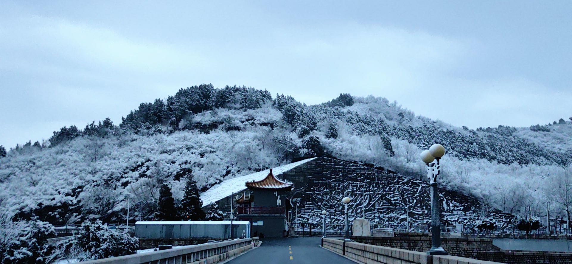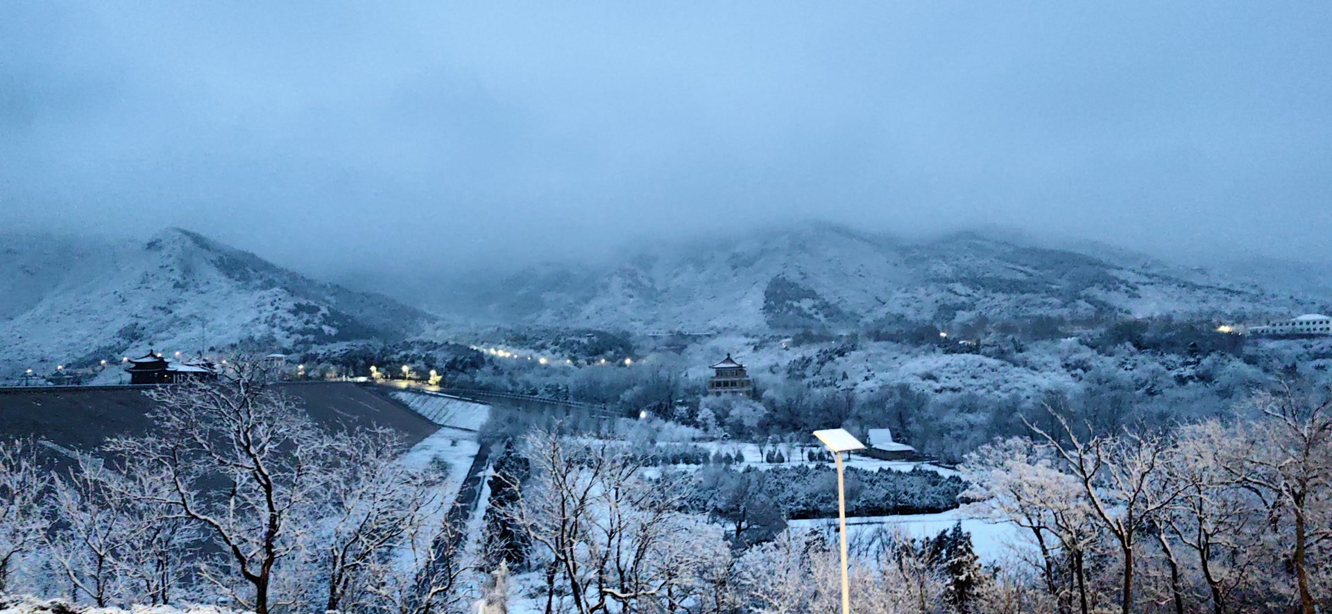 雪落青山,晨光初醒!十三陵水库雪景,有种别样的美