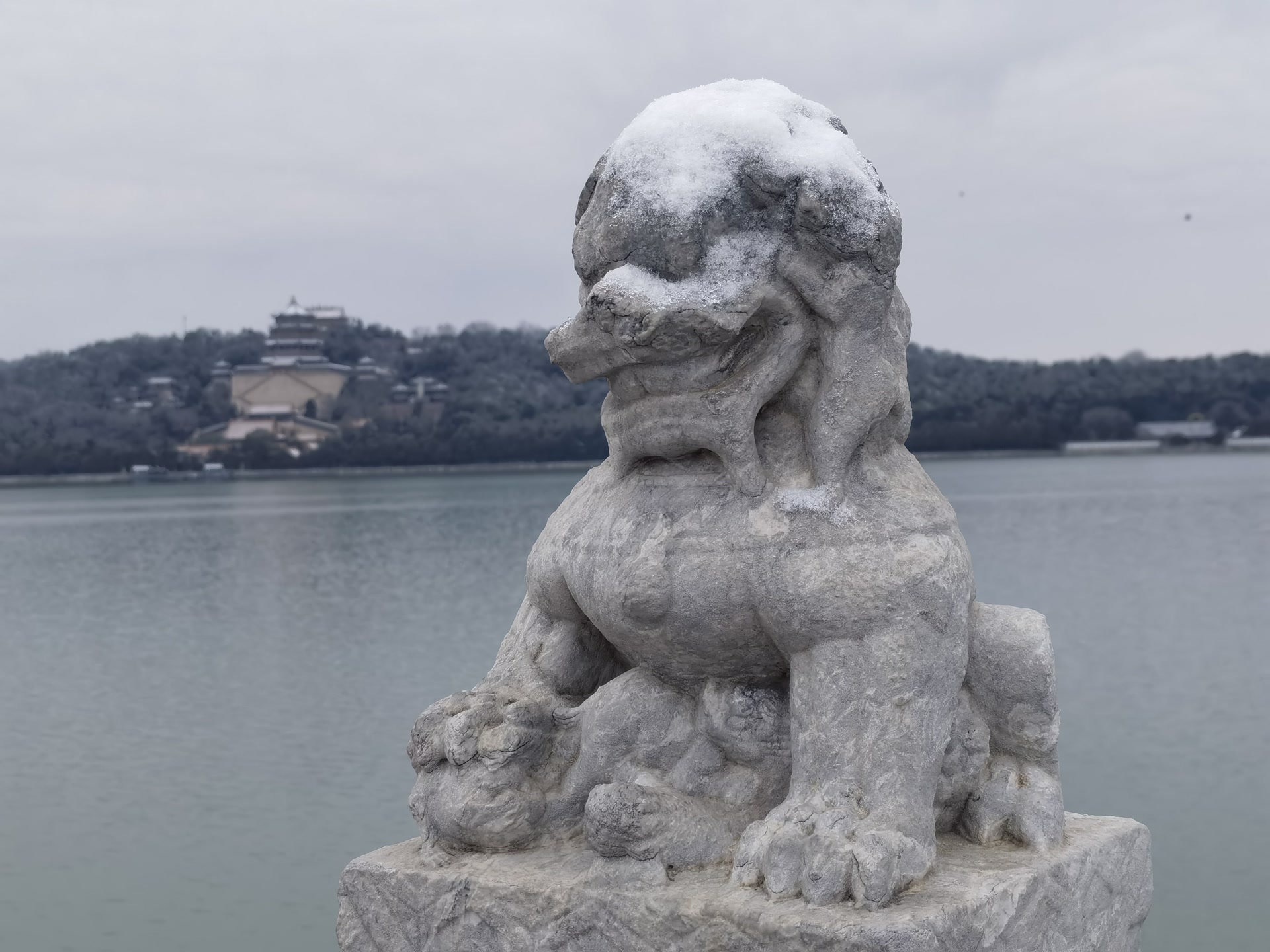 石狮戴雪。 刘宪国 摄