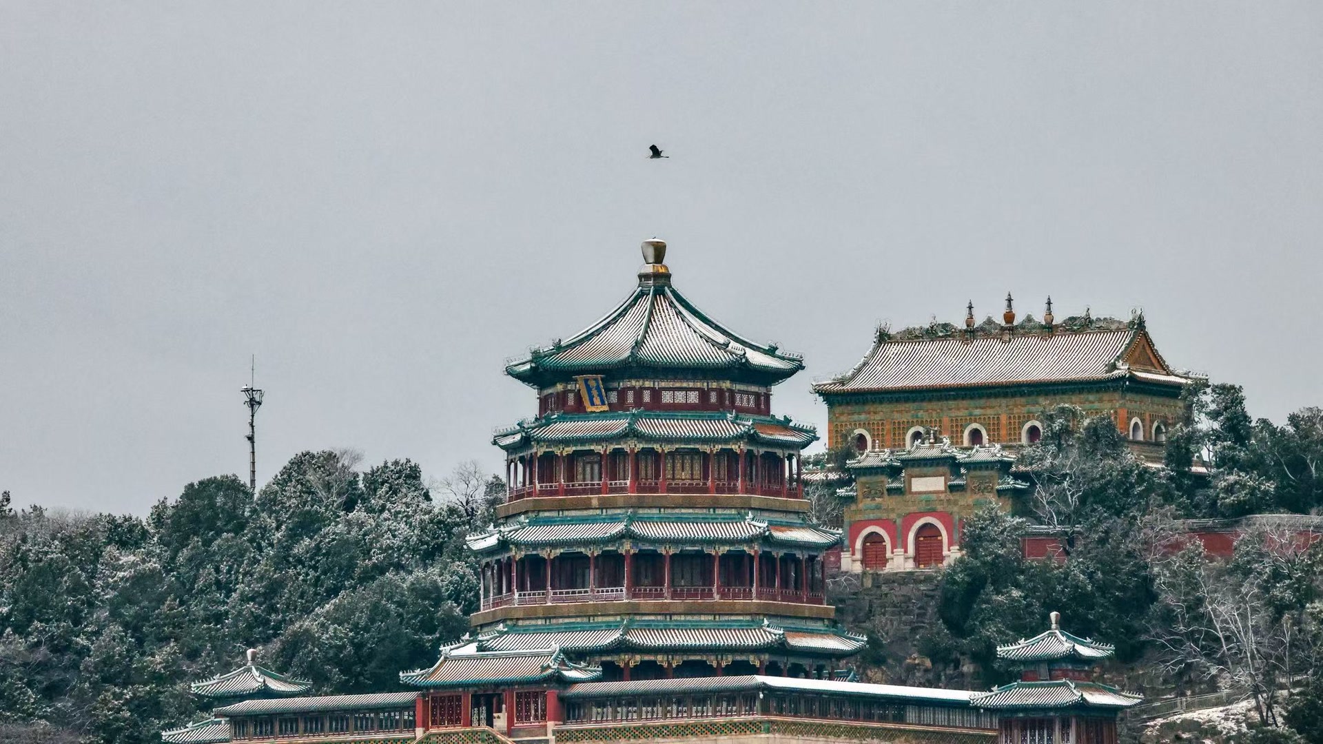雪盖佛香阁。 徐小红 摄