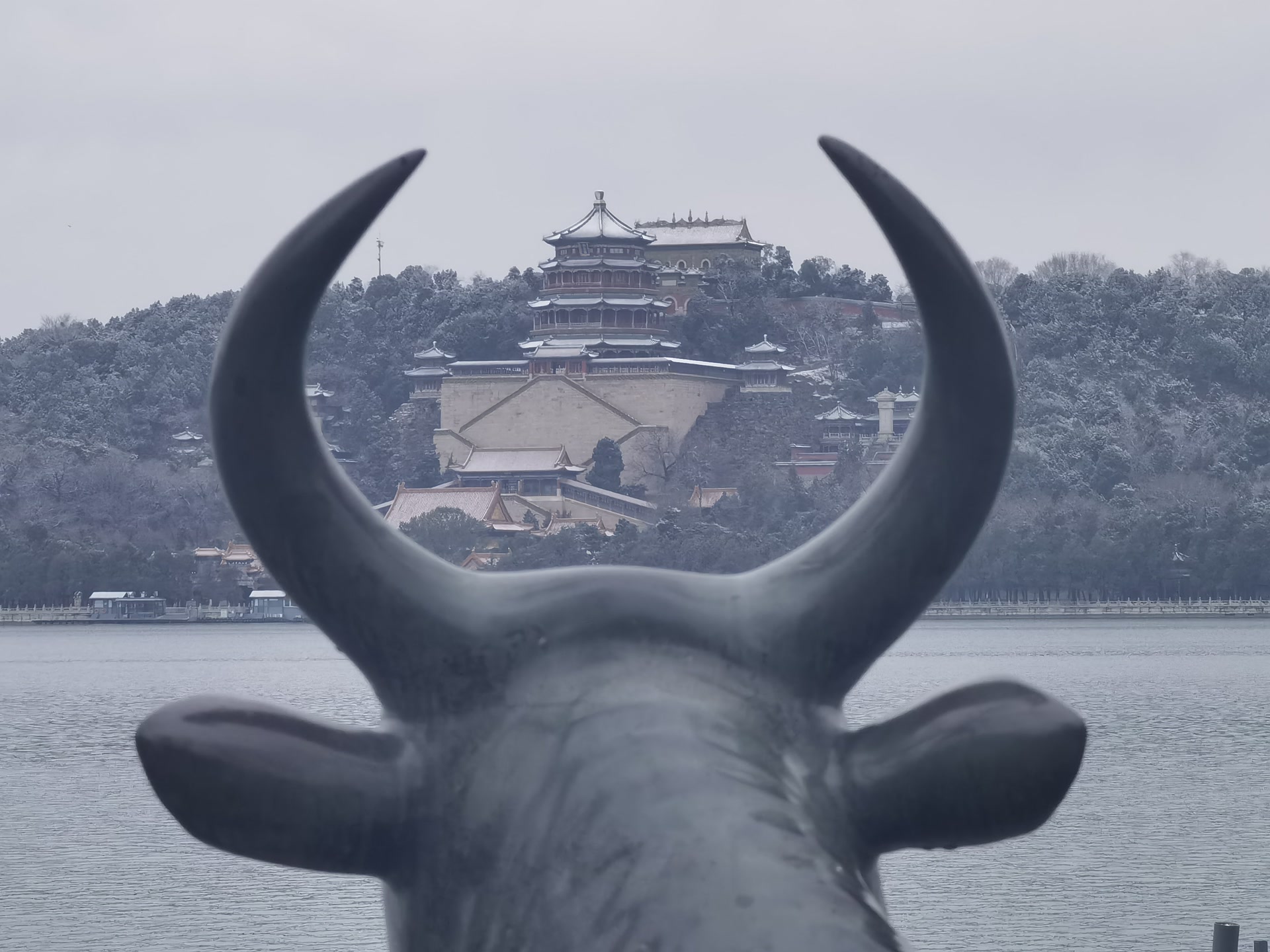 铜牛观雪。 刘宪国 摄