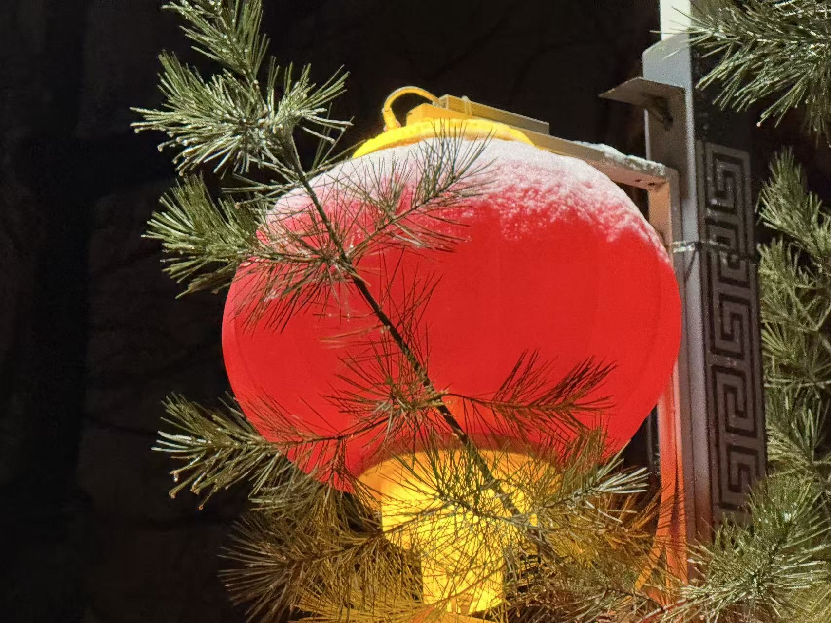 正月雪打灯。 温红征 摄