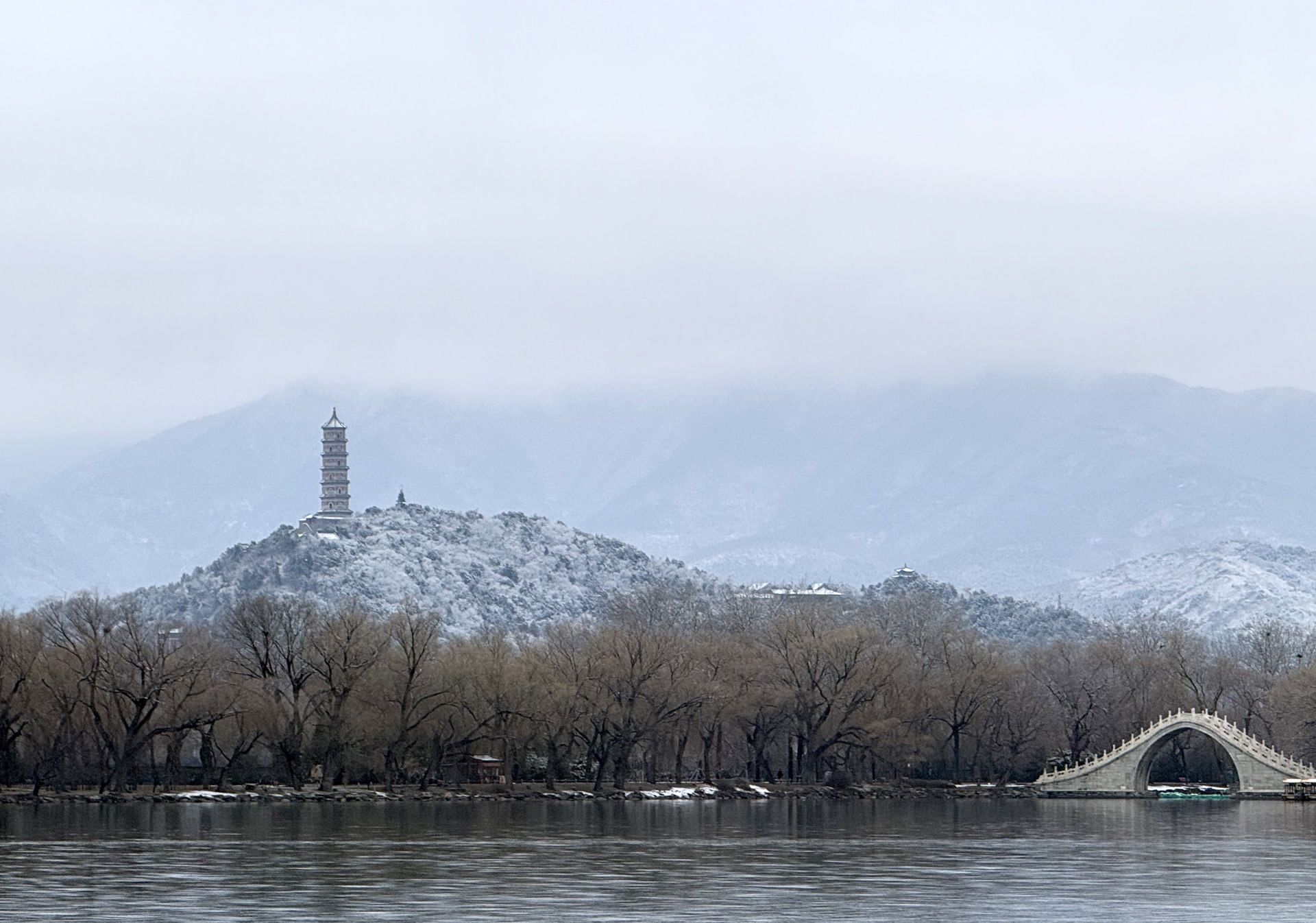 初雪后的颐和园。 温红征 摄
