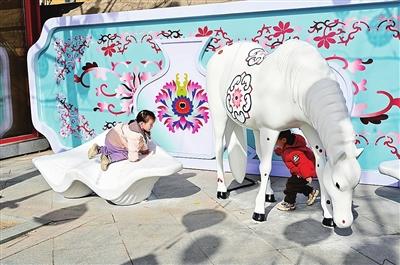 漫步同庆街,目之所及皆是新春的喜庆与祥和,整条街巷被精致花艺与吉祥花灯精心装点,一步一景皆尽显丙午马年的新春意趣。街区核心亮点当属郎世宁《十骏图》主题艺术装置打造的“十骏十景”专属打卡点,“狮子玉”“万吉骦”等名驹以木雕、铁艺、花艺等多元材质生动再现,形神兼备、灵动传神。骏马的飒爽英姿与古街的青砖黛瓦、朱红廊柱相映成趣,成为市民游客定格马年元宵美好瞬间的热门机位。年轻情侣相携在骏马装置前甜蜜合影,孩童围着造型生动的名驹蹦跳嬉戏、模仿骏马奔腾的姿态,老街之上,处处都是温馨团圆的画面。