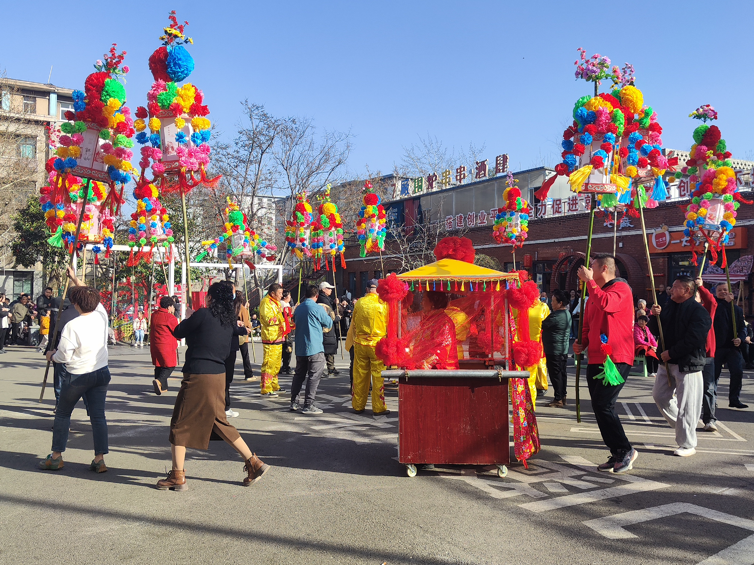 一入街区,浓浓的年味便扑面而来。红灯笼挂满古街檐角,与青砖灰瓦、古窑遗址相映成趣,处处张灯结彩、暖意融融。苇子灯阵轮番上演,舞者身着传统服饰,踏着欢快节拍,光影流转间,将传统民俗的韵味演绎得淋漓尽致。