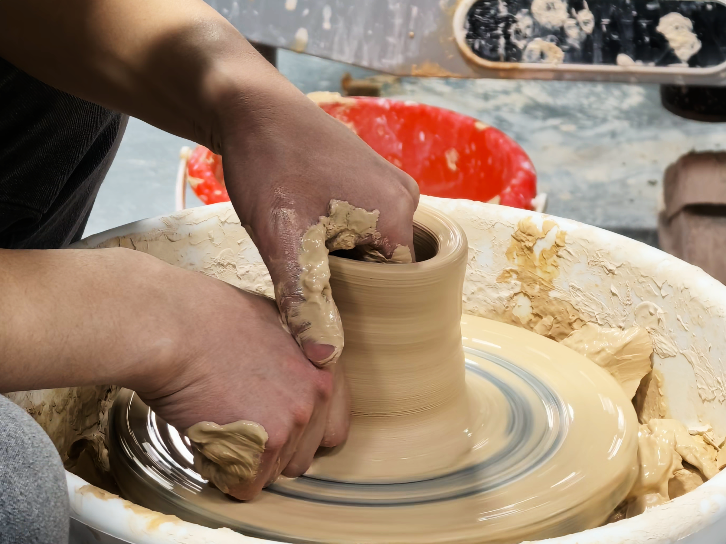 陶艺体验馆内,市民游客围坐身旁,亲手体验手拉坯技艺,指尖摩挲间,触摸千年制瓷工艺的温度,在一拉一捏中,感受非遗技艺的匠心与灵动。