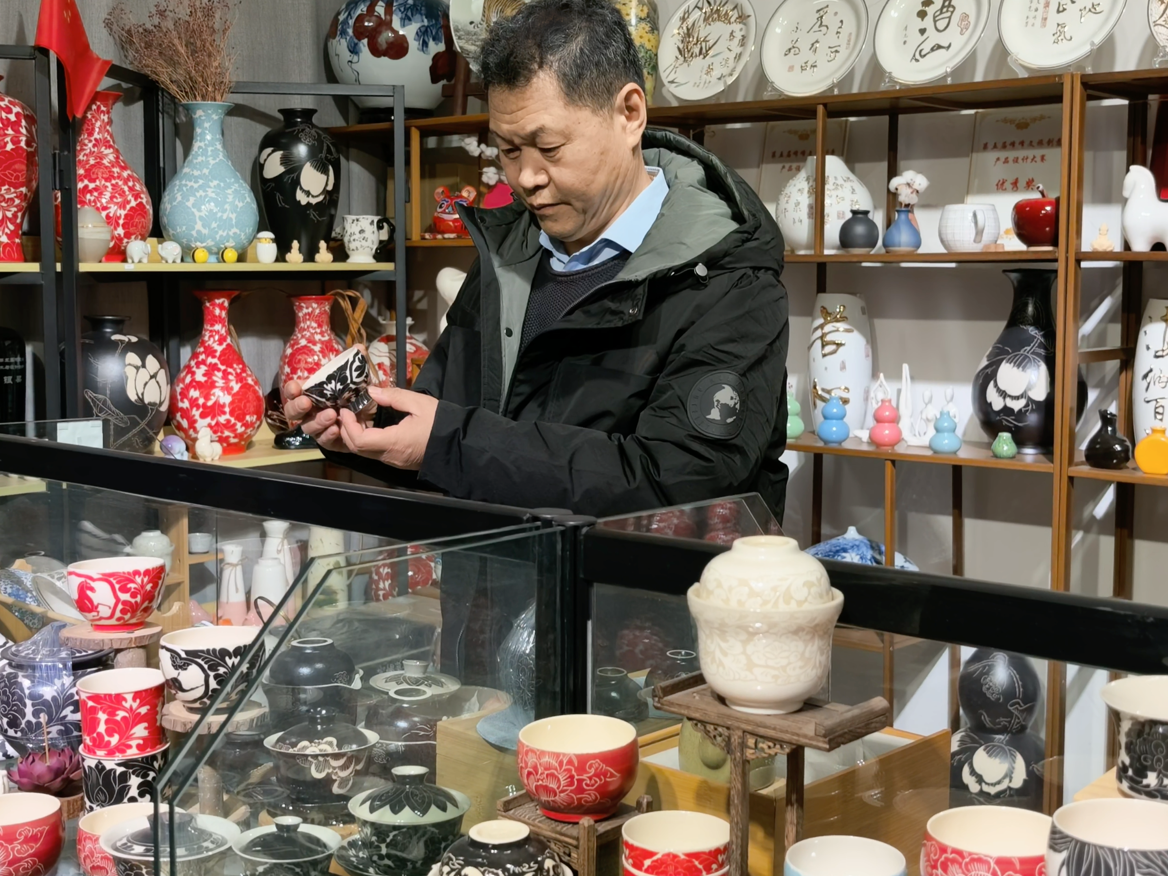 文创商店里,磁州窑特色瓷器备受青睐,黑白分明的传统刻花、剔花纹样,搭配简约时尚的现代设计,成为新春佳节里最具文化气息的“年货”,承载着人们对传统文脉的喜爱与传承。