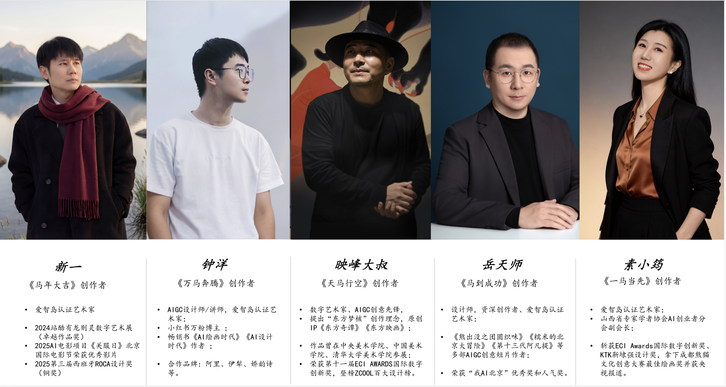 该AIGC贺岁系列短片,是联合国内知名AIGC社区爱智岛(中国首个基于Web3社区生态的人工智能艺术家创作联盟),由爱智岛社区推荐艺术家映峰大叔、钟洋、素小筠、新一、岳天师等知名创作者联袂打造,以“马”为核心,分别围绕“天马行空”、“万马奔腾”、“一马当先”、“马年大吉”、“马到成功”等六大主题展开创作,用前沿技术为传统生肖文化注入了全新活力。