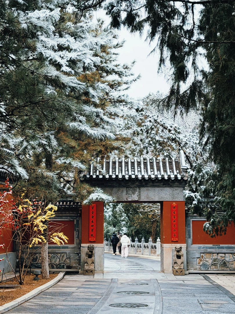 丙午马年的第一场雪,温柔漫过八大处的山林古刹。雪是轻软的,覆了苍松红墙,覆了石阶禅檐,天地间漾着淡淡的清寂与禅意。