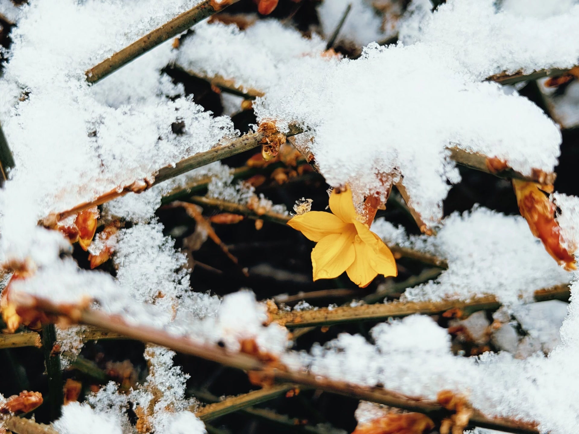 却有迎春枝桠,破雪而生。嫩黄的花簇顶着薄雪,白与黄相映,寒与暖相融,在清冷的雪色里,悄悄递来第一缕春信。