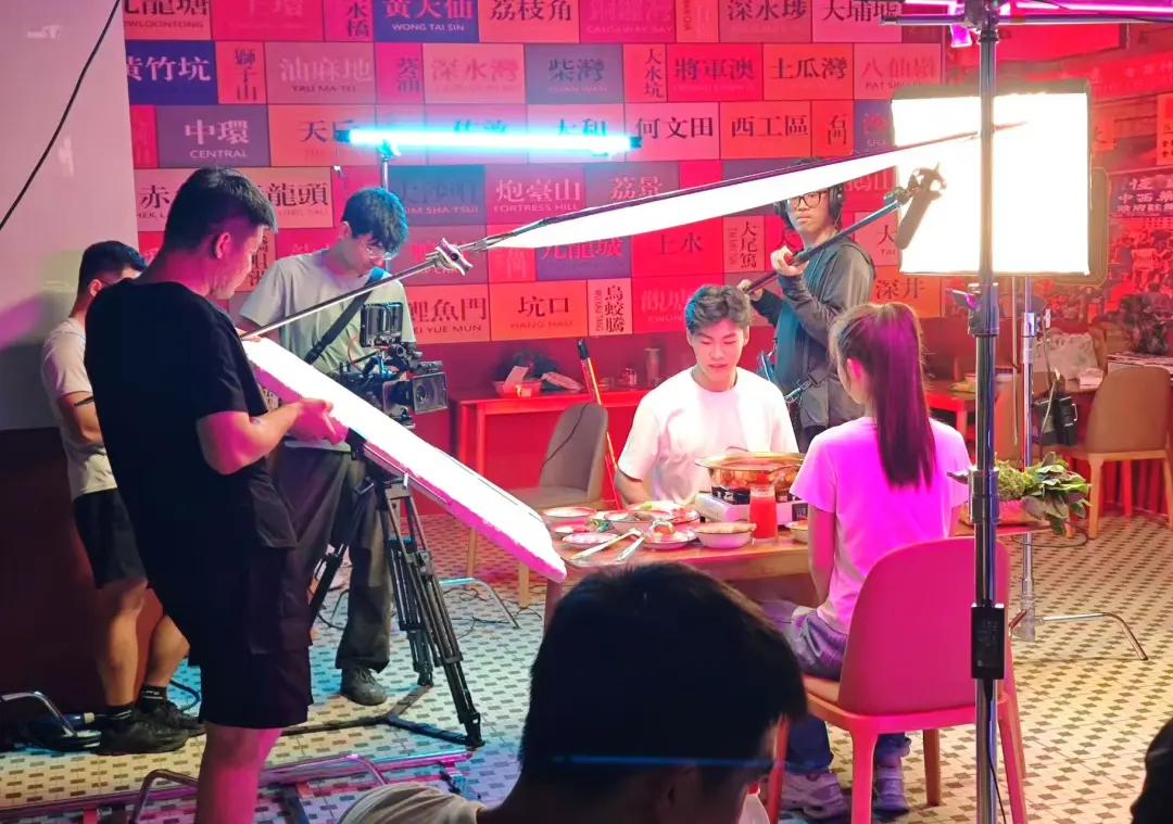 在长江视听微短剧产业基地进行拍摄的微短剧剧组