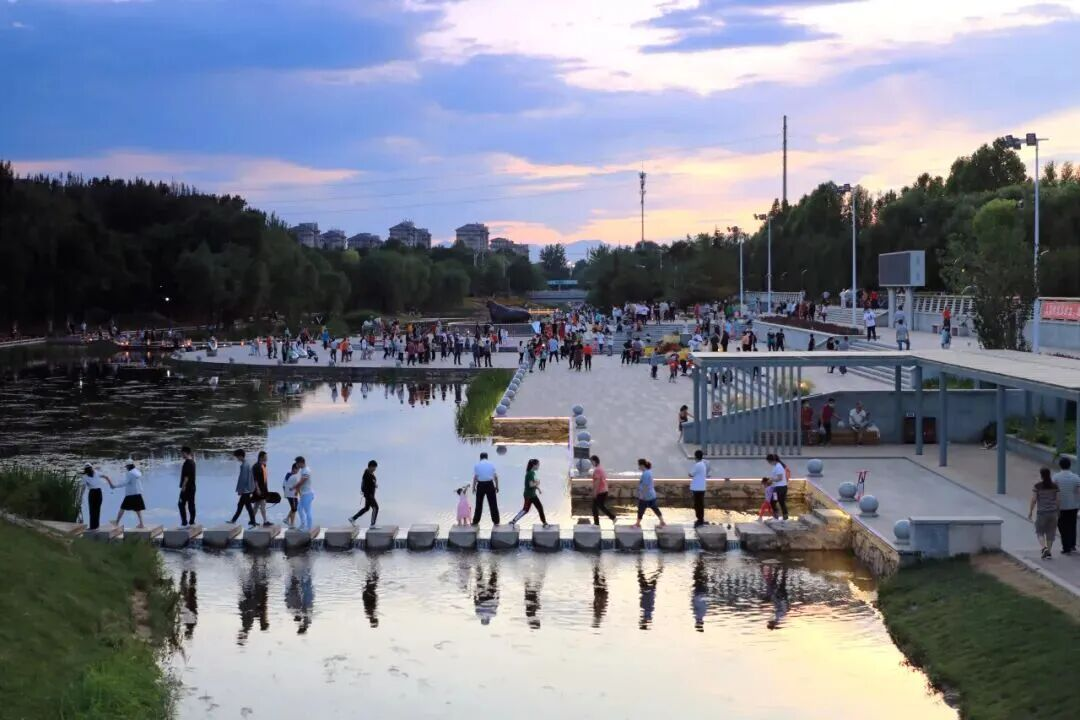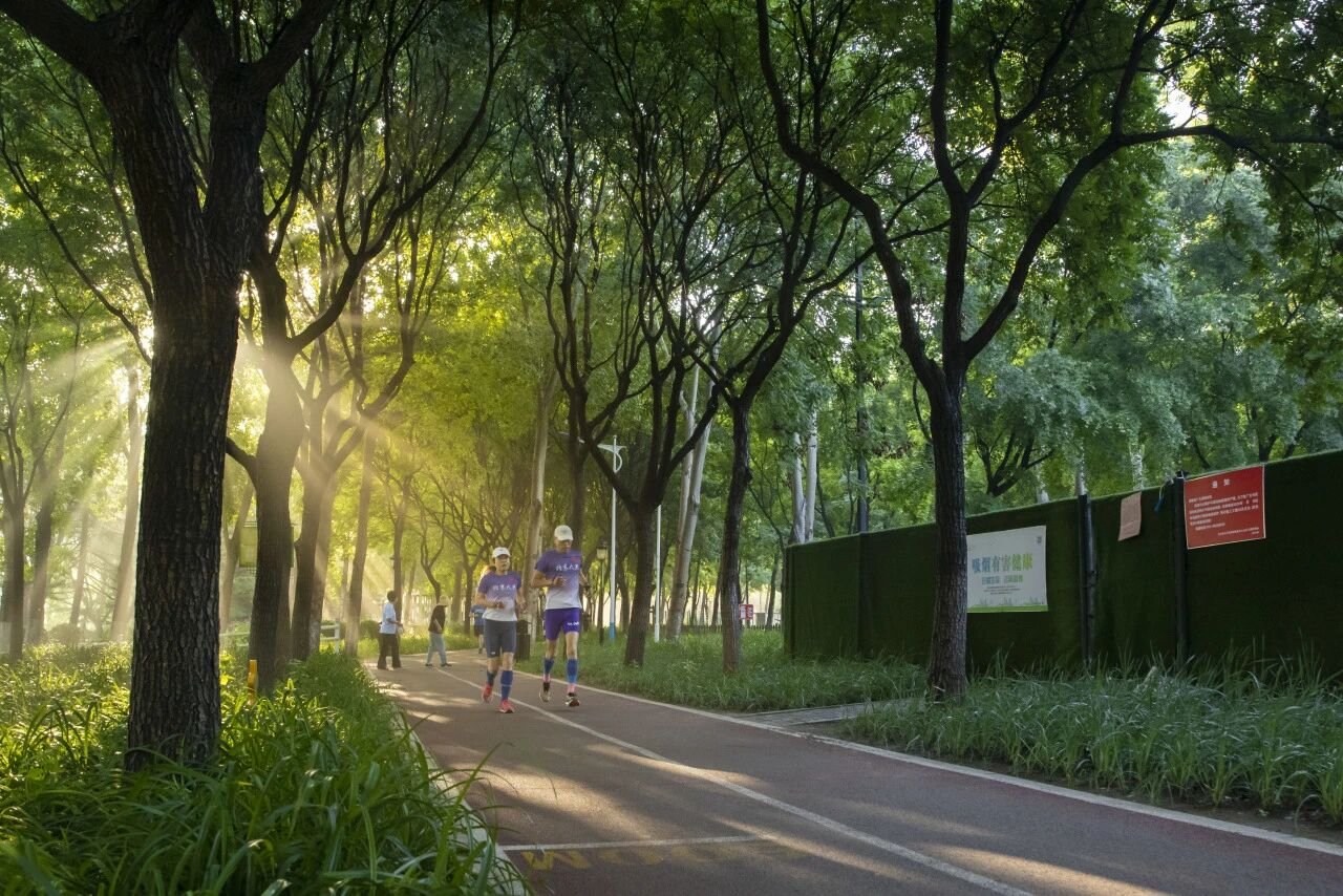 走向滨河运动公园,沿新凤河而建的红色跑道串联起足球场、篮球场和孩子们的欢笑声。